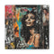 On canvas, a vibrant portrayal of a woman exudes 90s nostalgia, immersed in deep, vivid colors reminiscent of the era's vibrancy and energy.