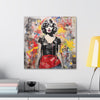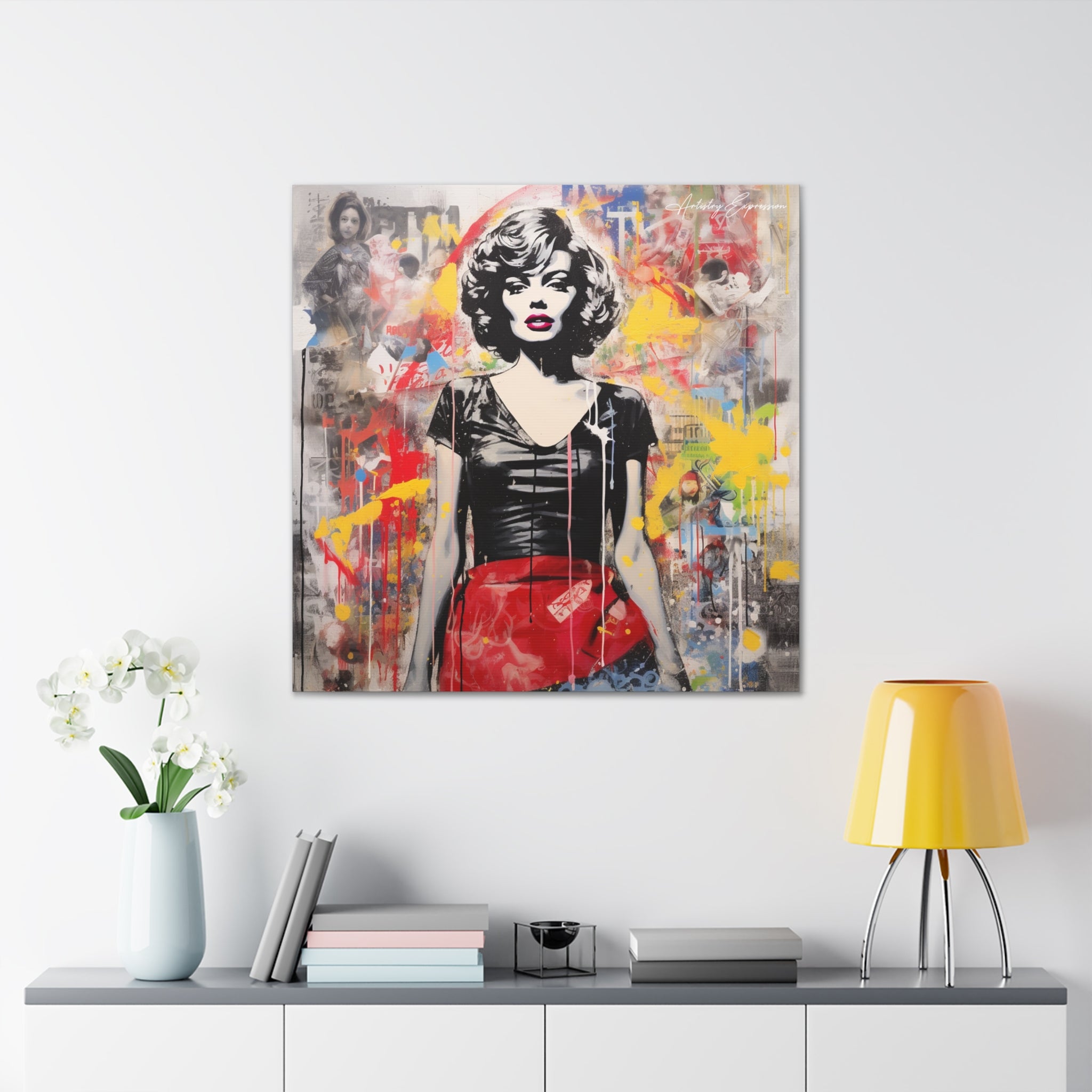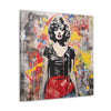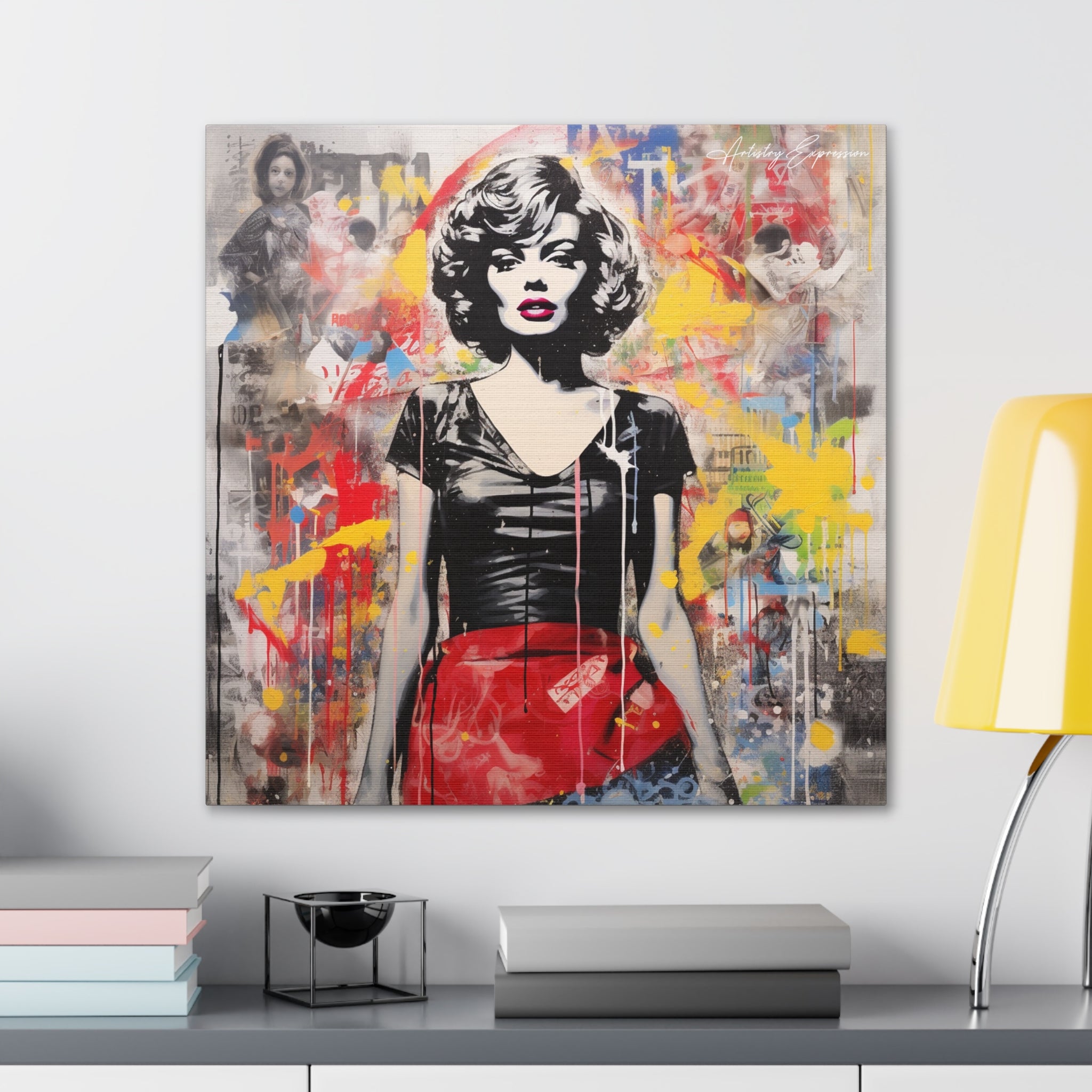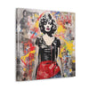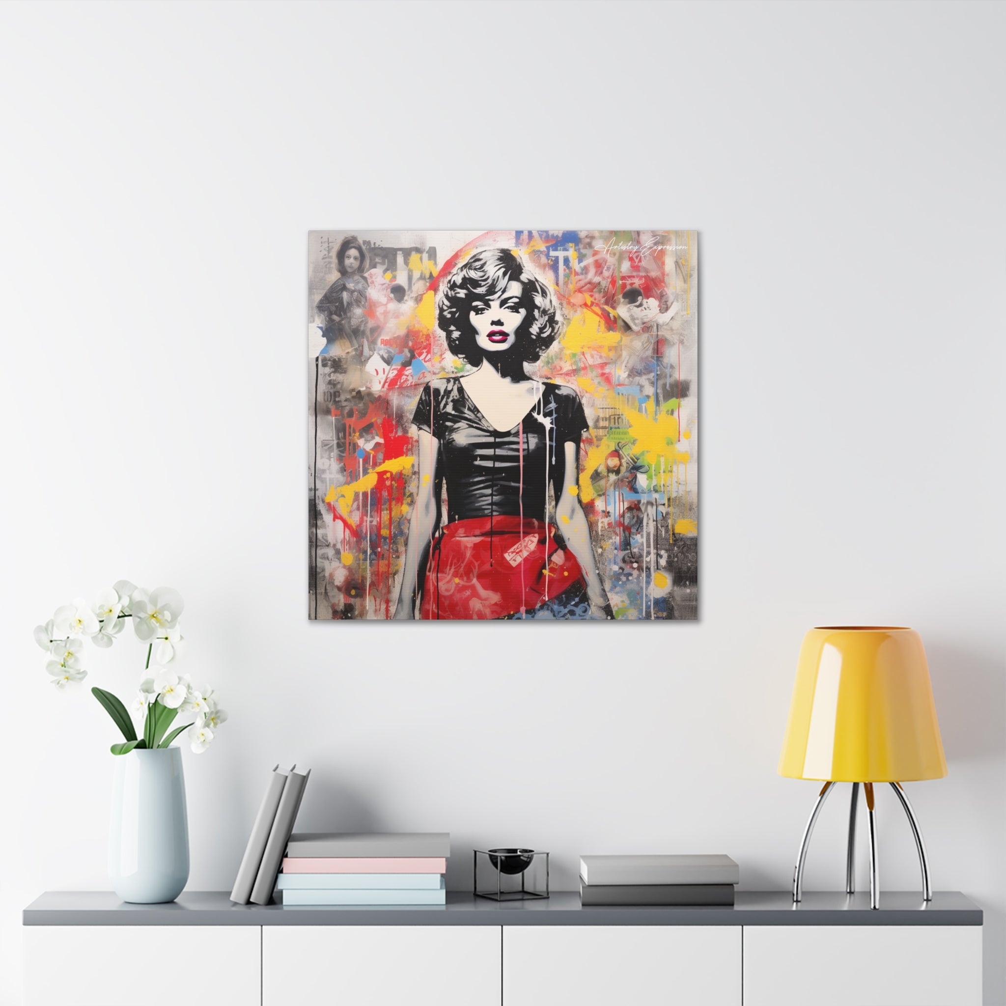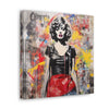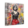 A vibrant graffiti canvas showcasing the beauty of a lady amidst colorful and expressive street art. The artwork captures urban elegance and allure, celebrating the captivating presence of the portrayed woman within the lively graffiti scene.