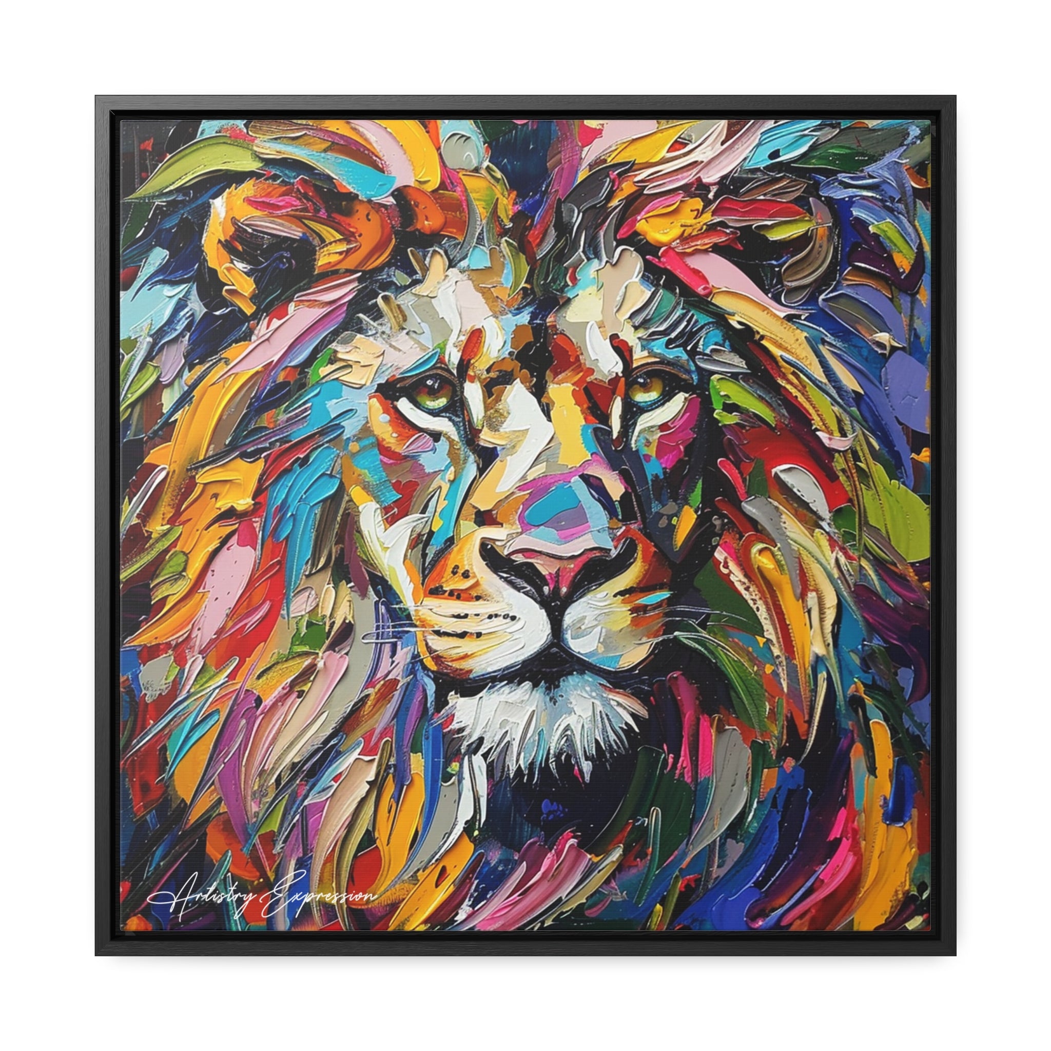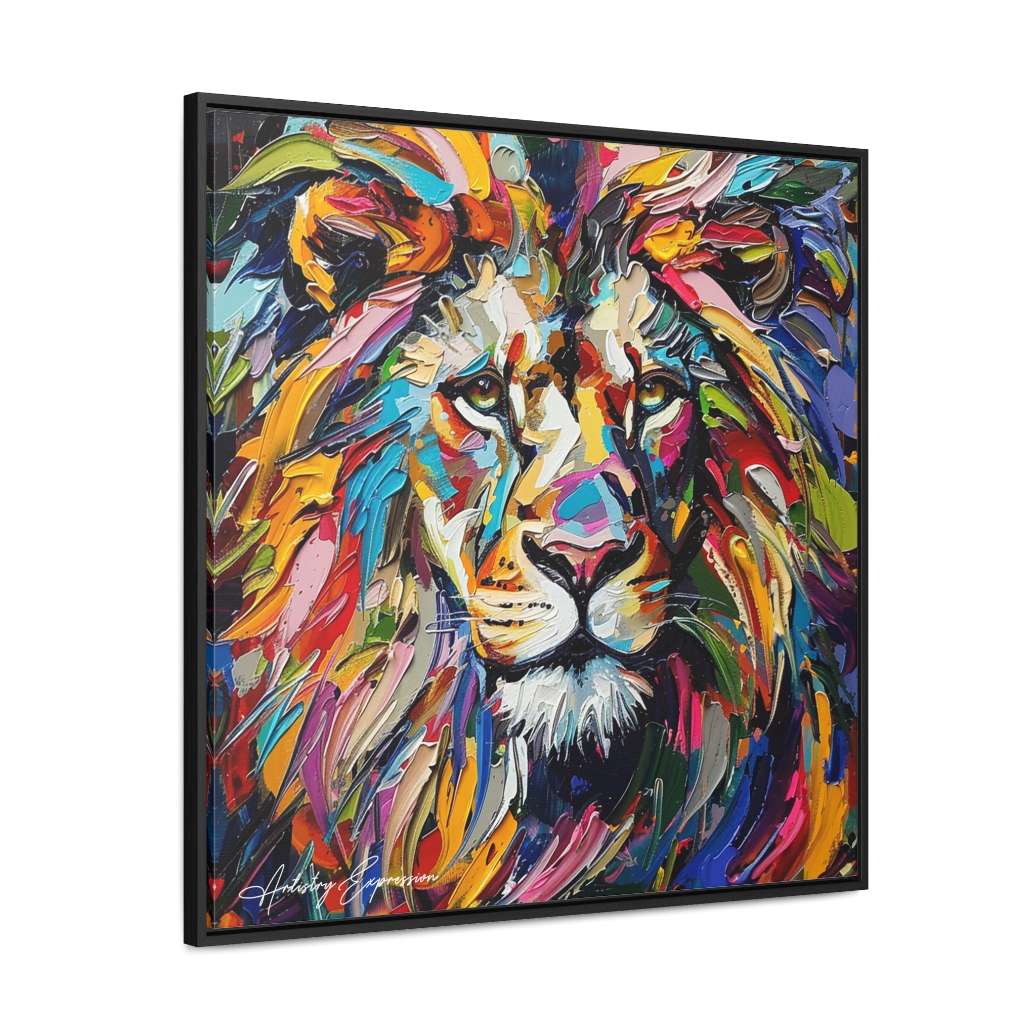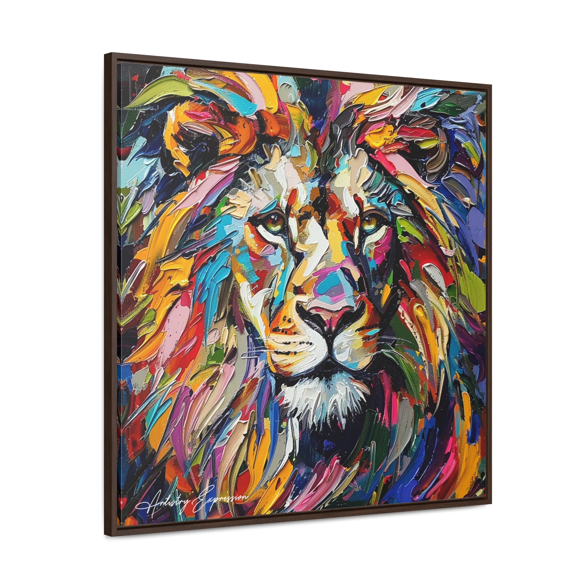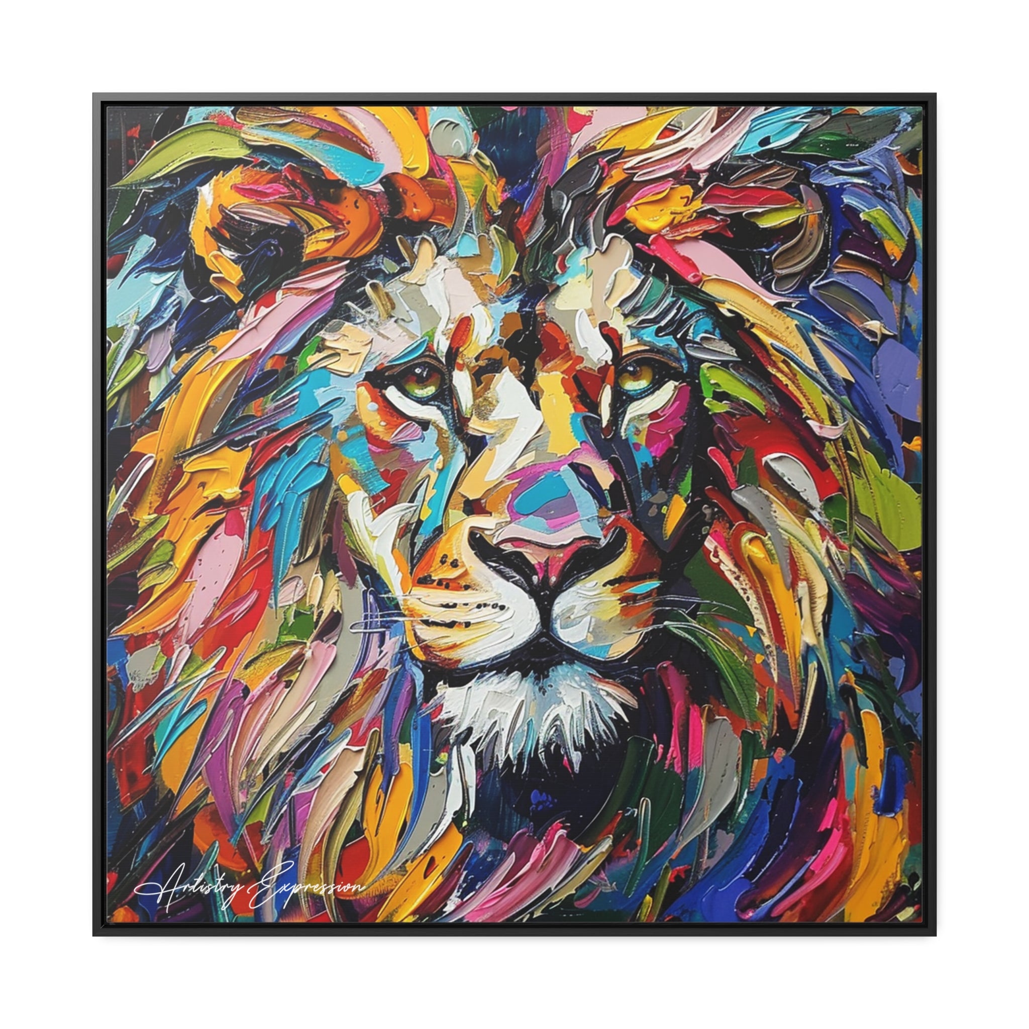 This artwork depicts a portrait of a lion rendered in an expressionistic style. The brushstrokes are dynamic and vigorous, imbuing a sense of movement, while the use of vibrant colors accentuates the intensity and emotion conveyed by the subject.