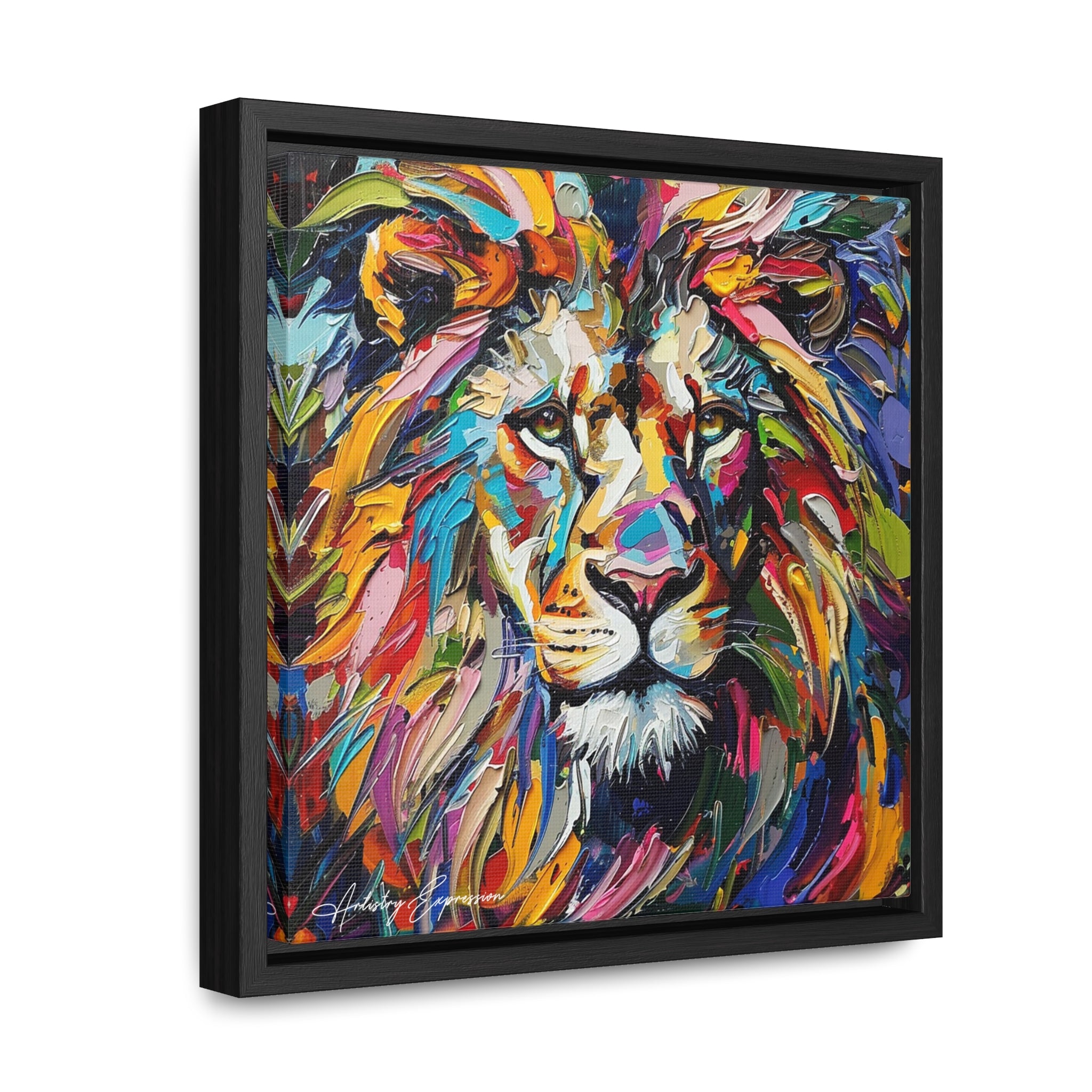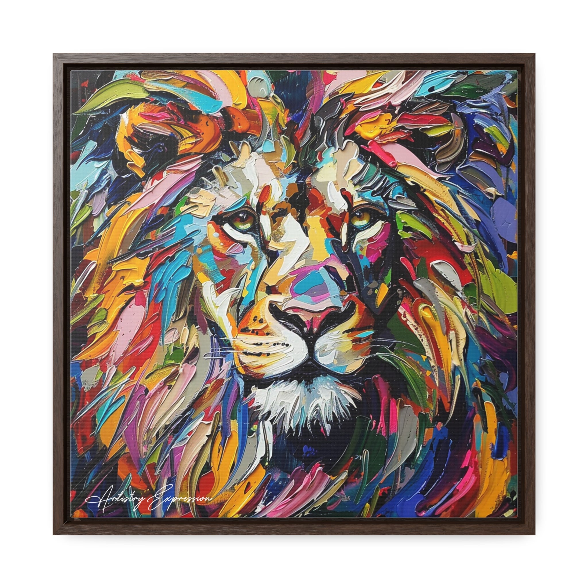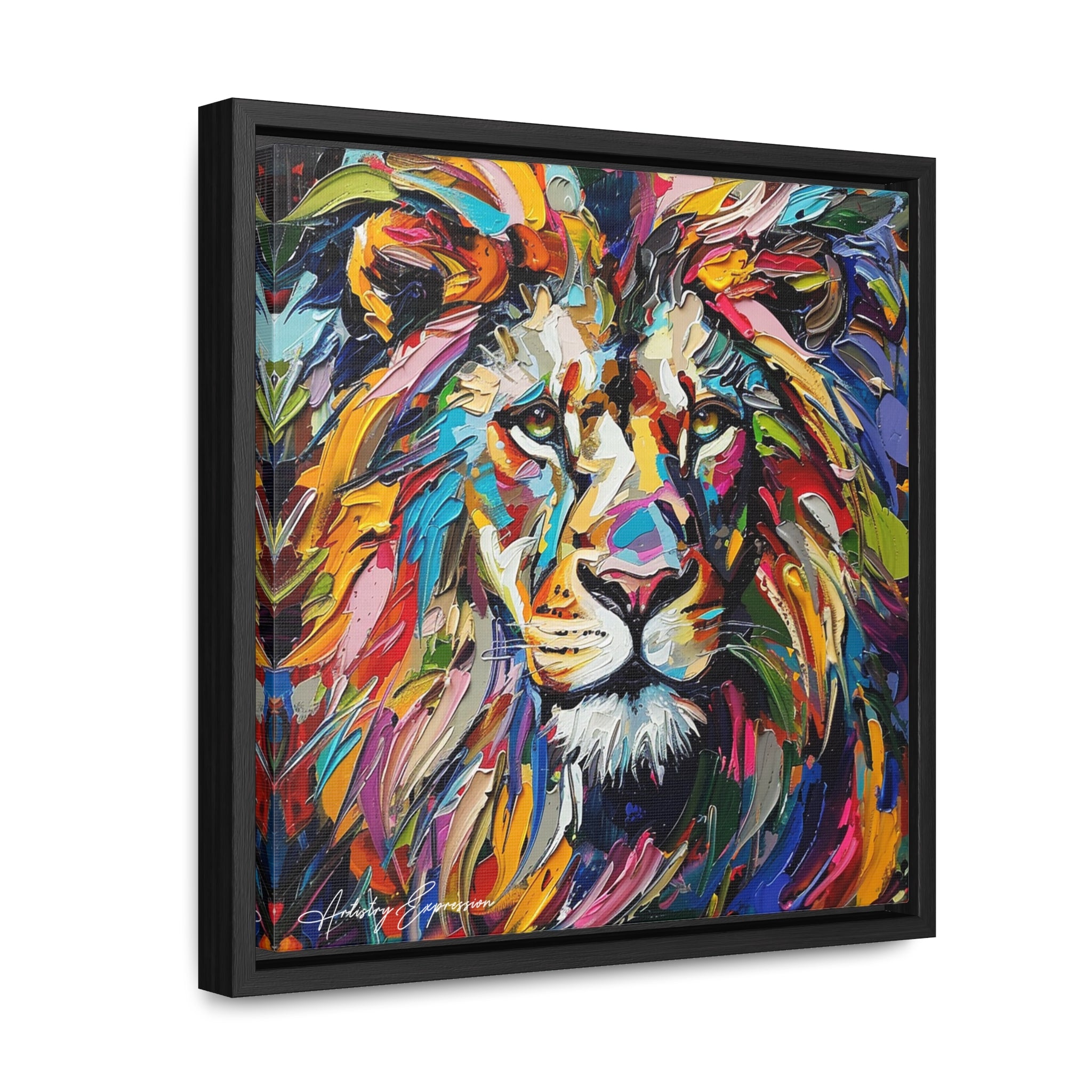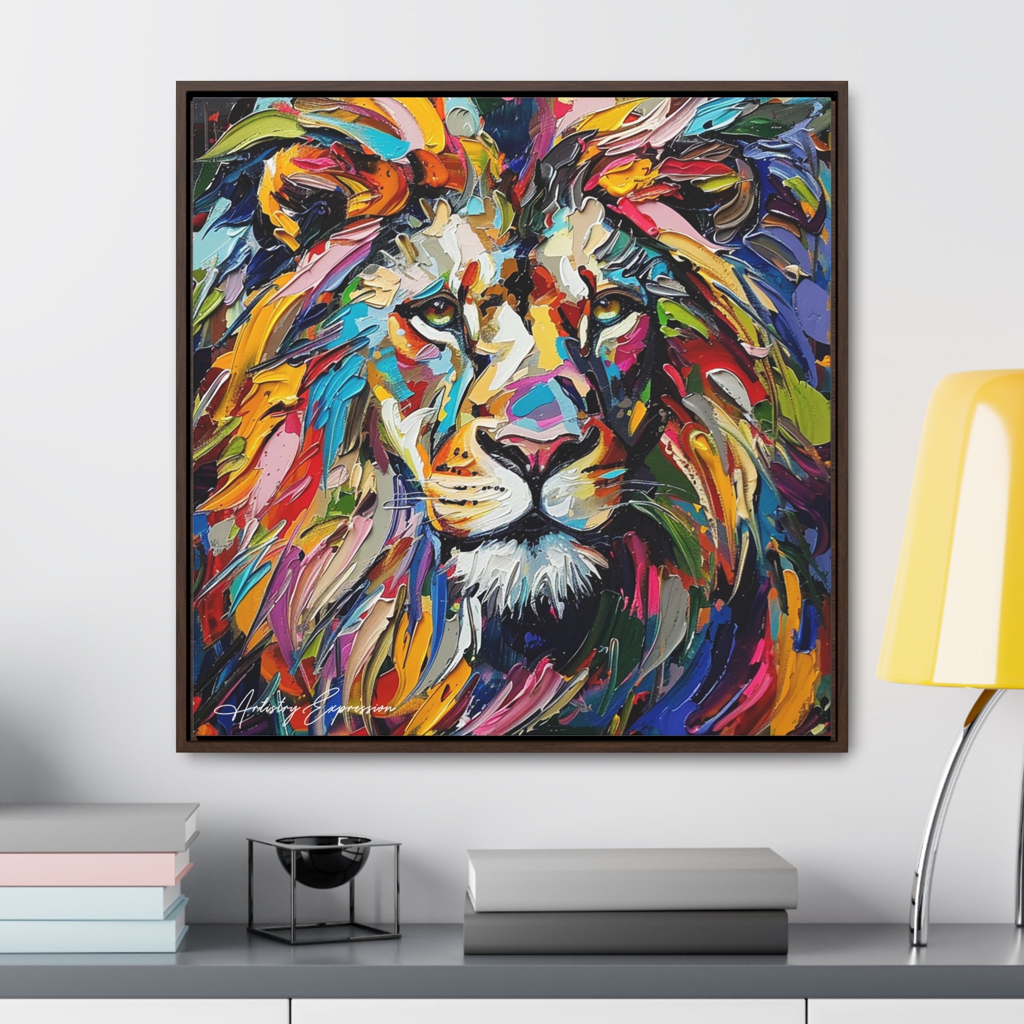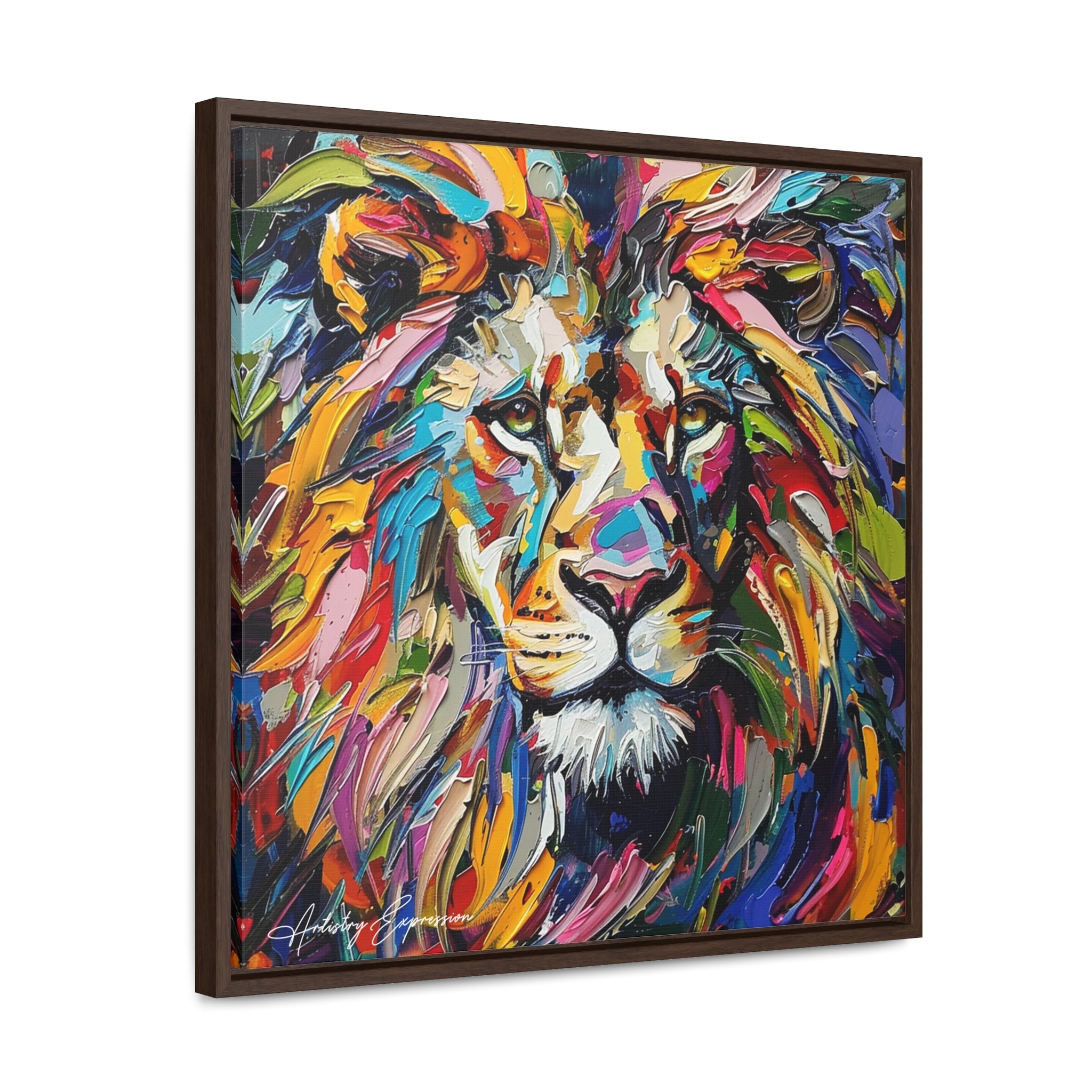 This artwork depicts a portrait of a lion rendered in an expressionistic style. The brushstrokes are dynamic and vigorous, imbuing a sense of movement, while the use of vibrant colors accentuates the intensity and emotion conveyed by the subject.