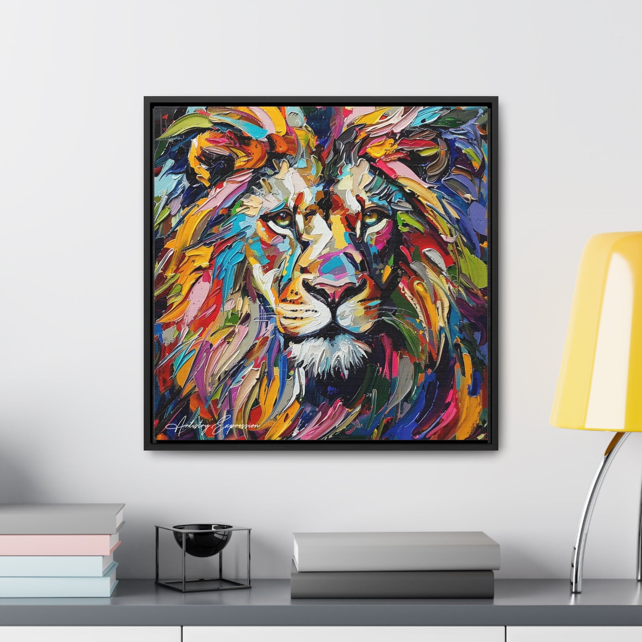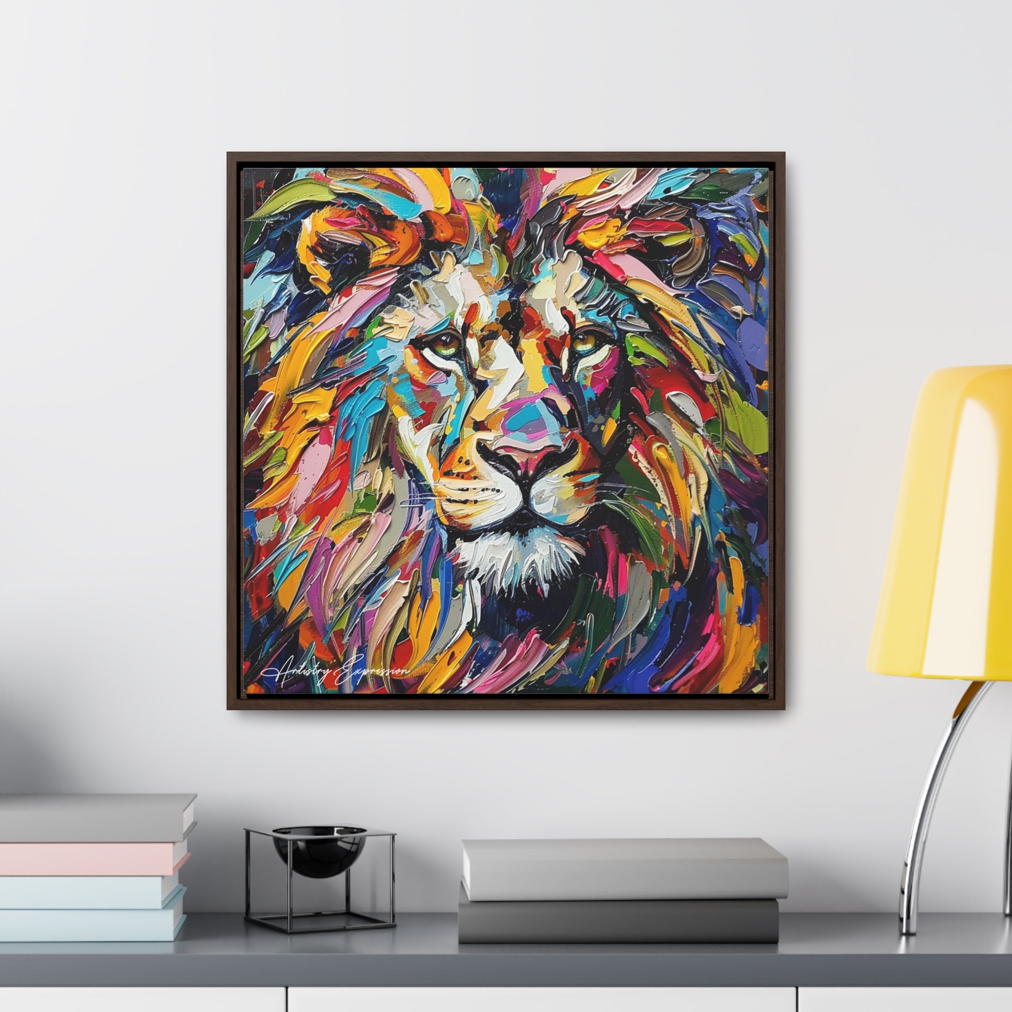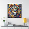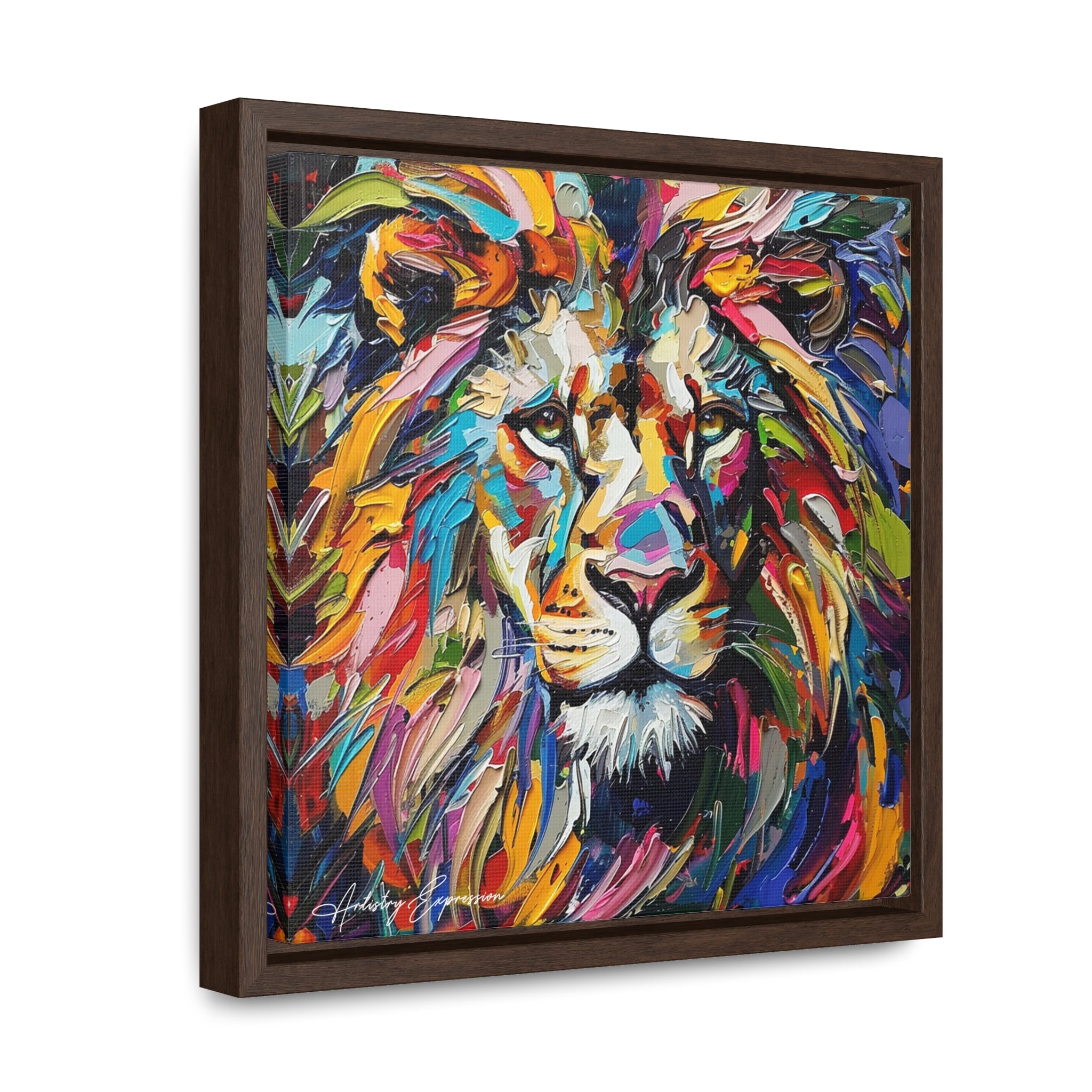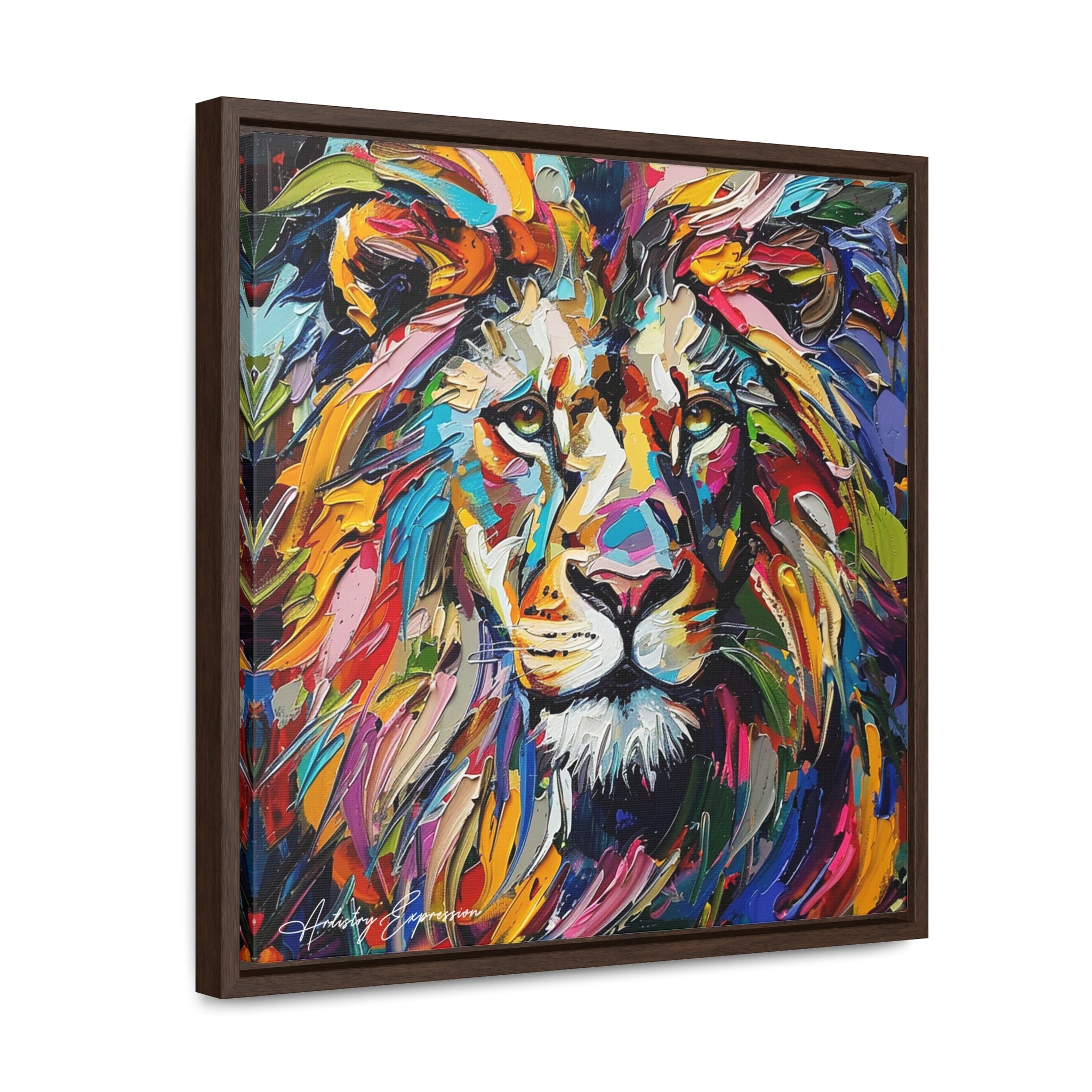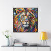 This artwork depicts a portrait of a lion rendered in an expressionistic style. The brushstrokes are dynamic and vigorous, imbuing a sense of movement, while the use of vibrant colors accentuates the intensity and emotion conveyed by the subject.