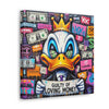 A vibrant graffiti composition intertwining pop art elements with social critique, exploring the allure and consequences of materialism through vivid imagery and bold symbolism.