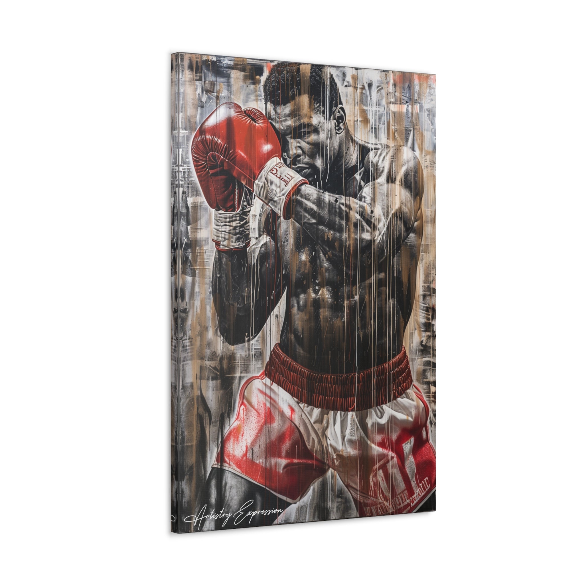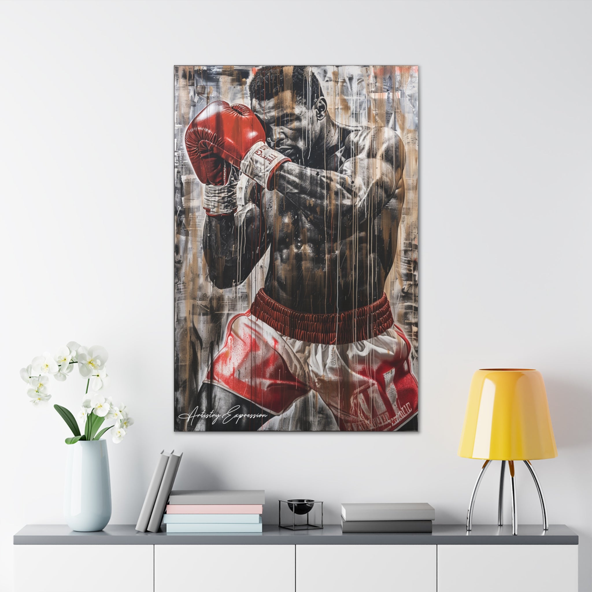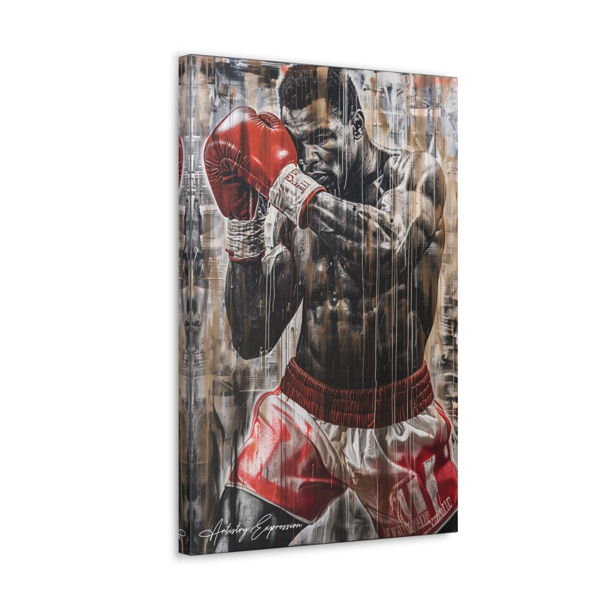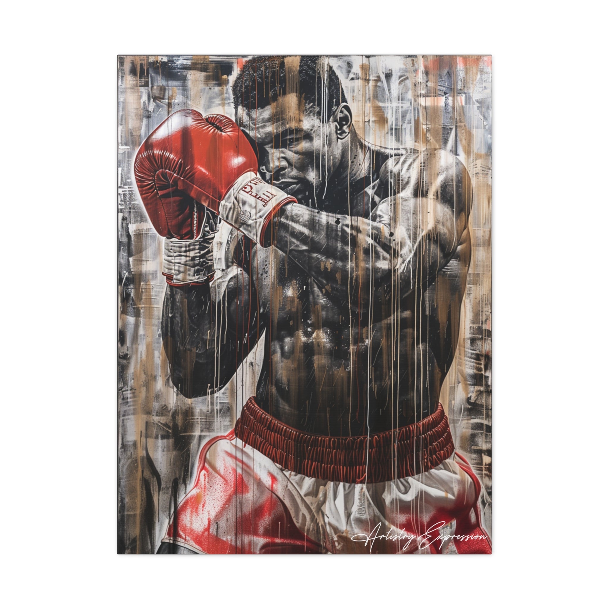 This artwork is a modern and urban tribute to boxing legend Muhammad Ali, using contemporary techniques and materials to capture his strength and fighting spirit.