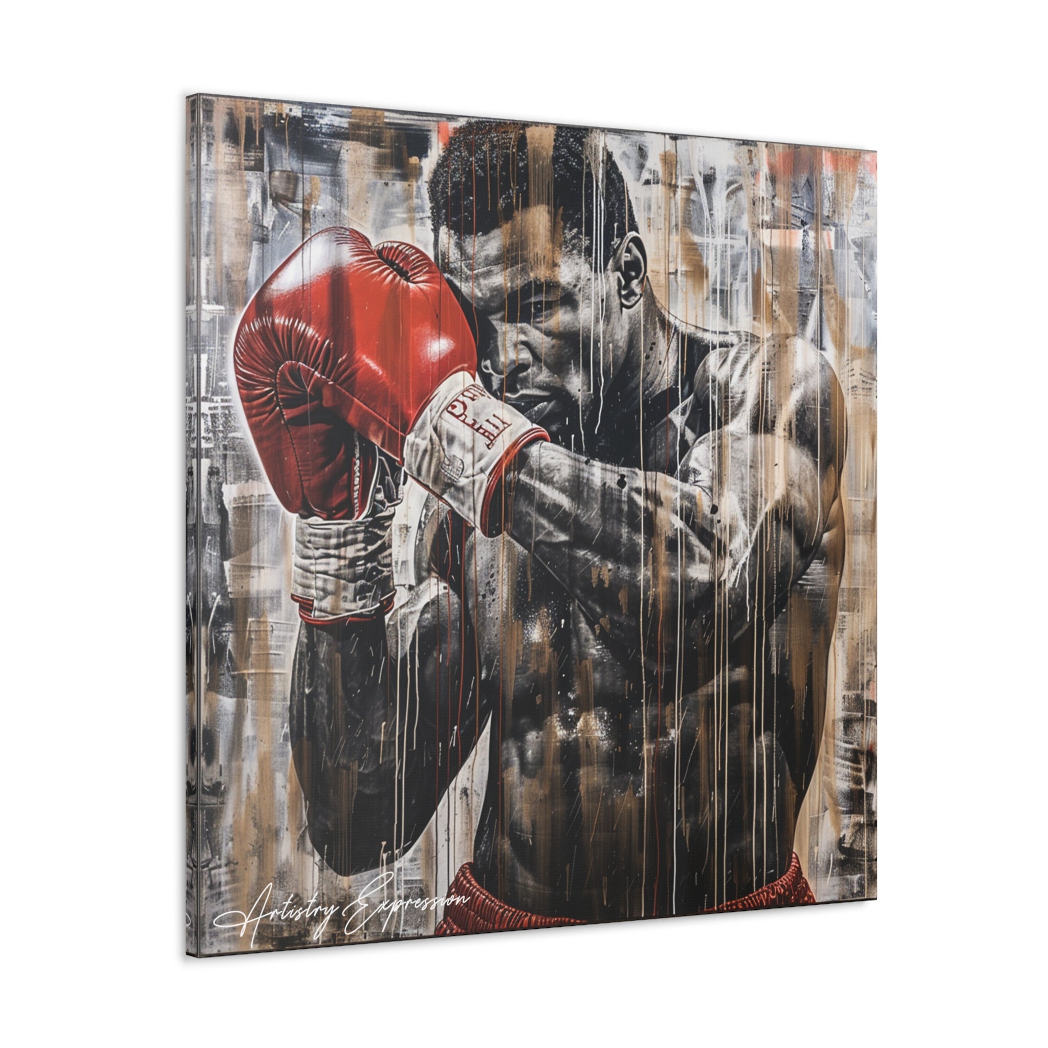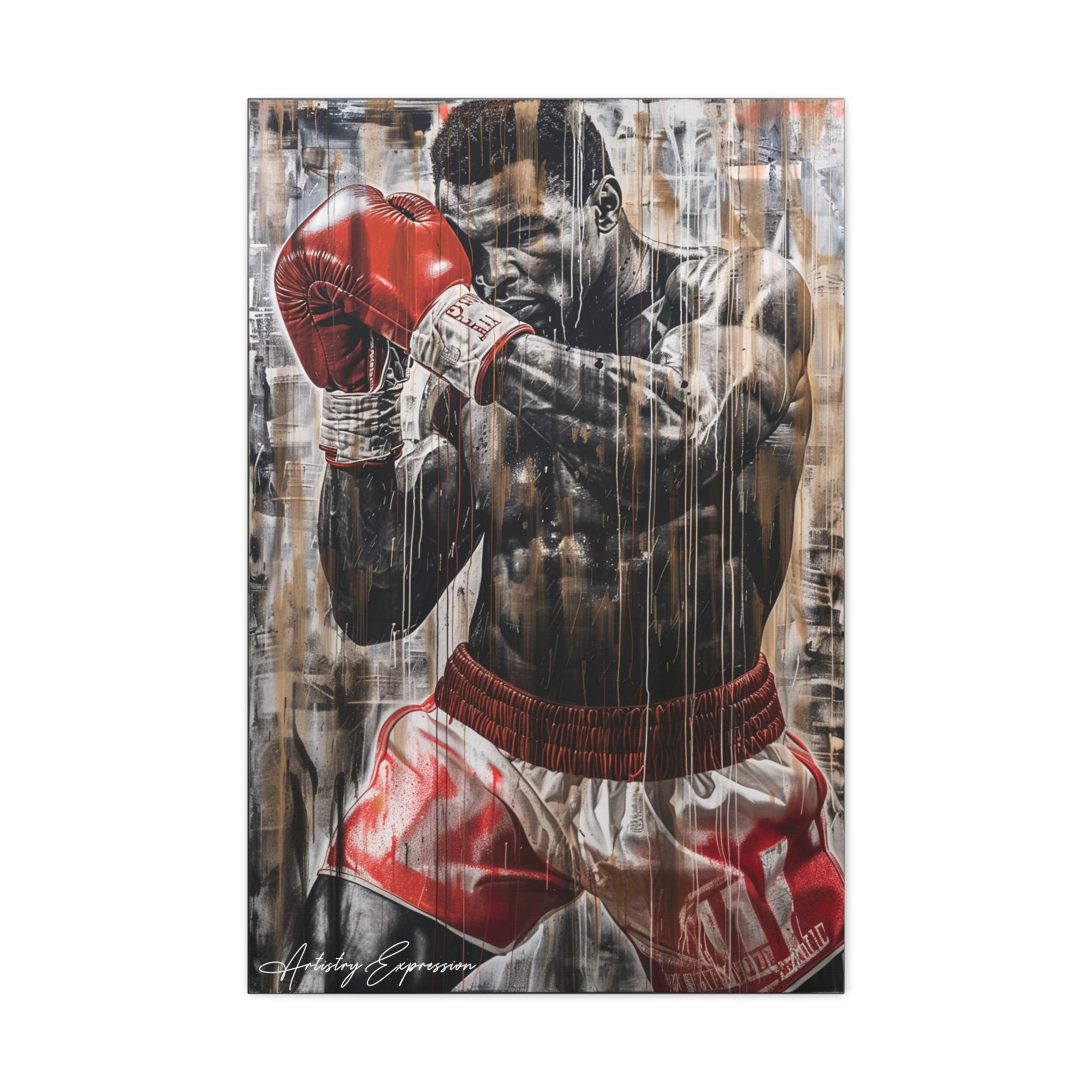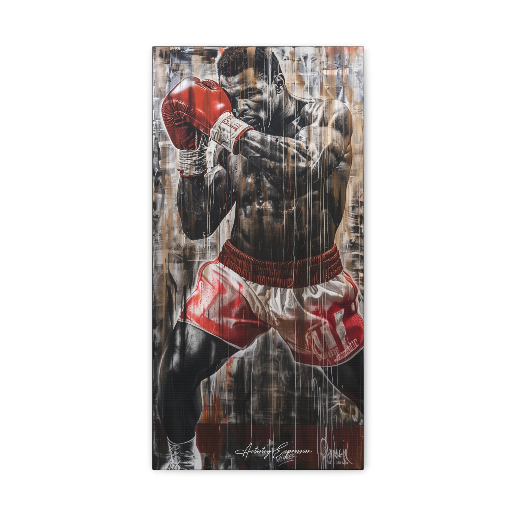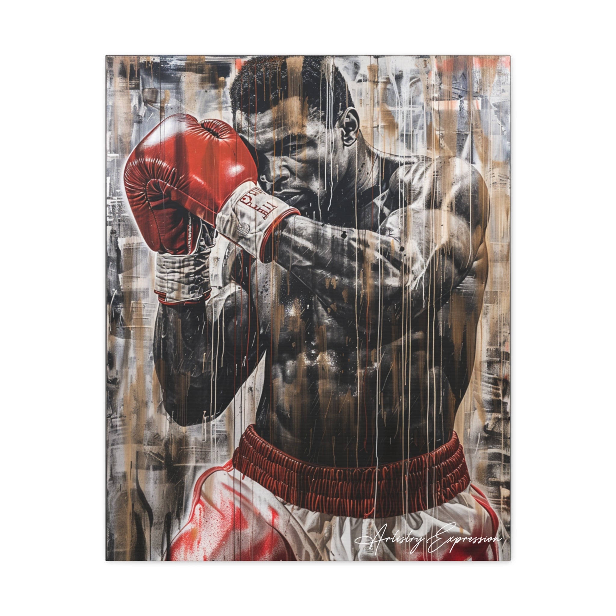 This artwork is a modern and urban tribute to boxing legend Muhammad Ali, using contemporary techniques and materials to capture his strength and fighting spirit.
