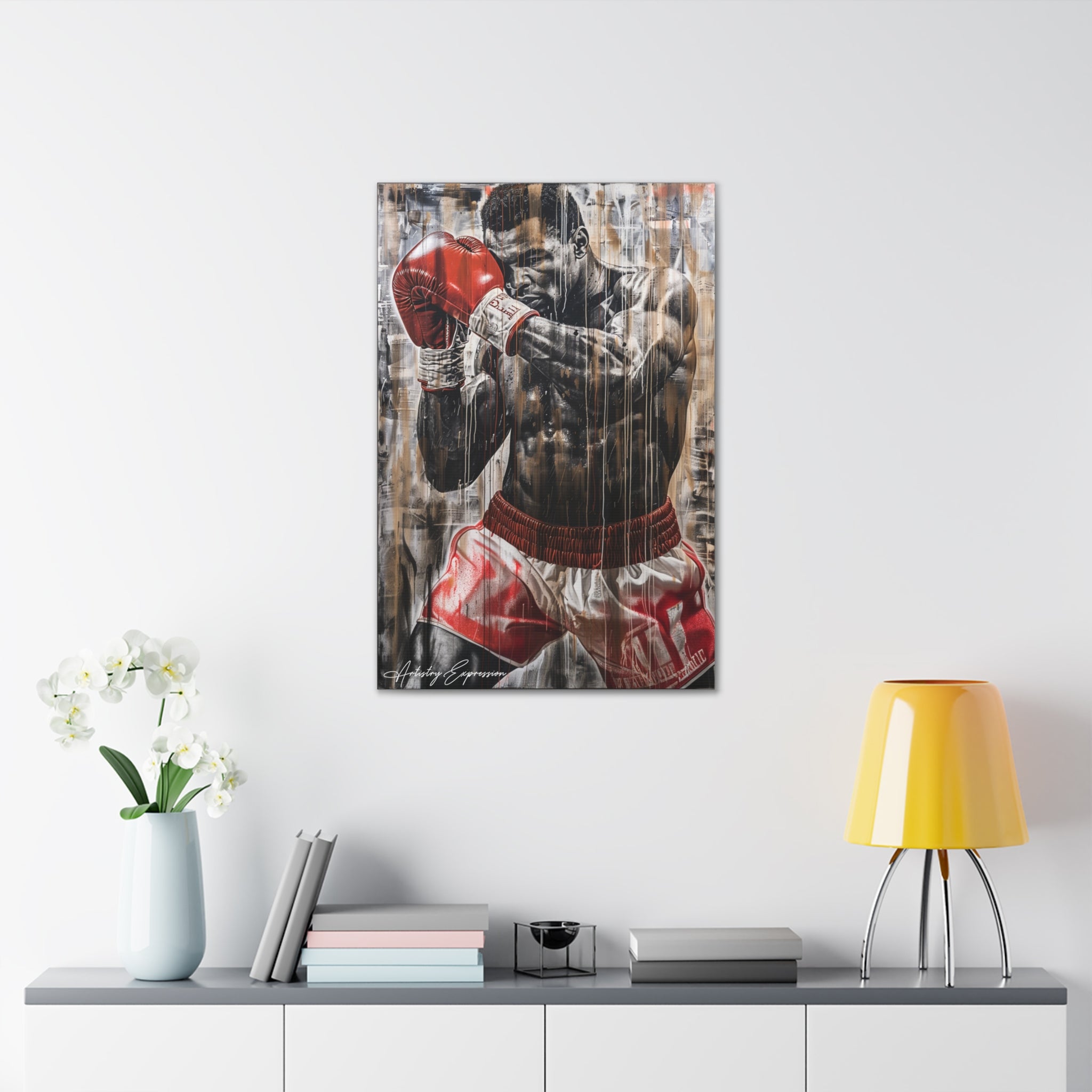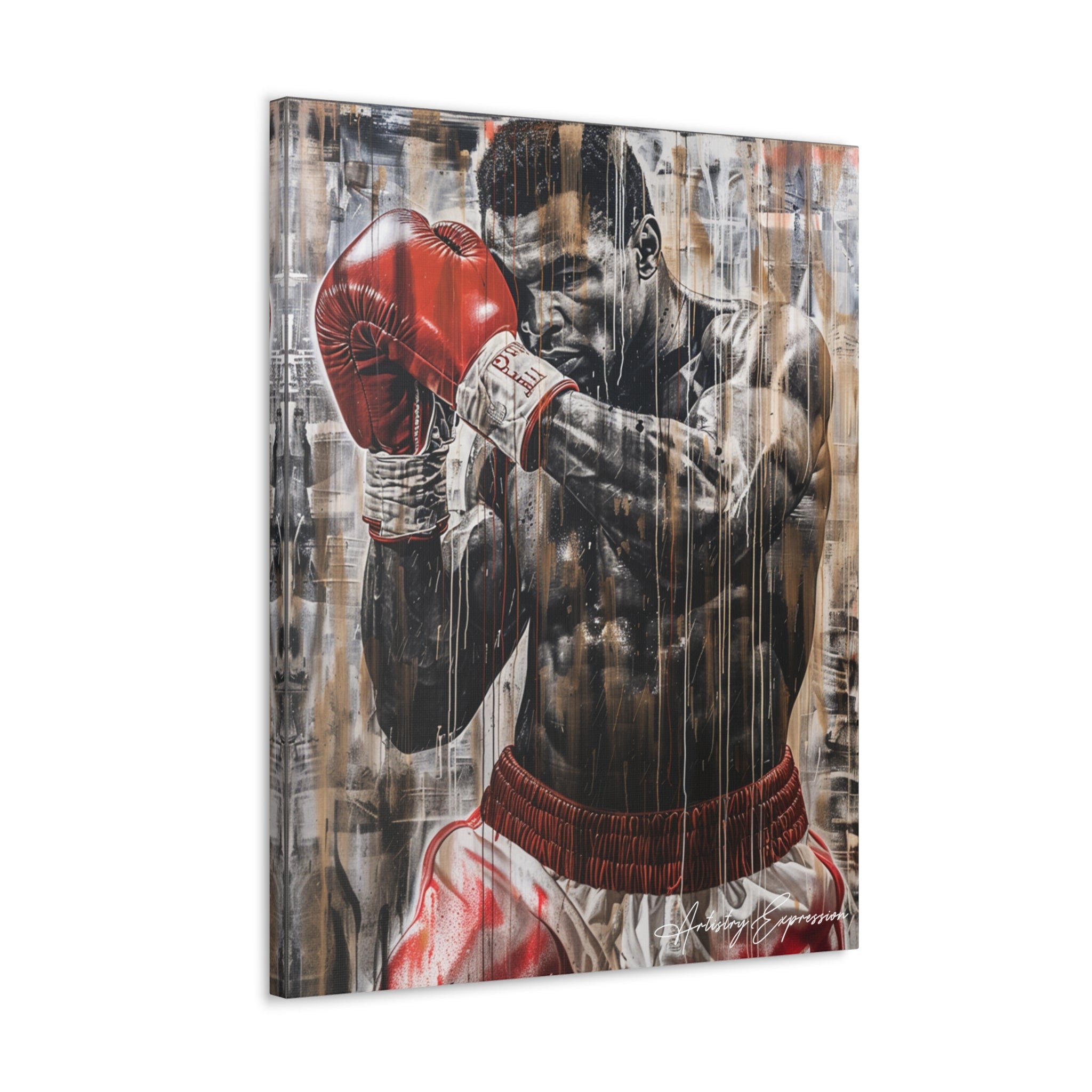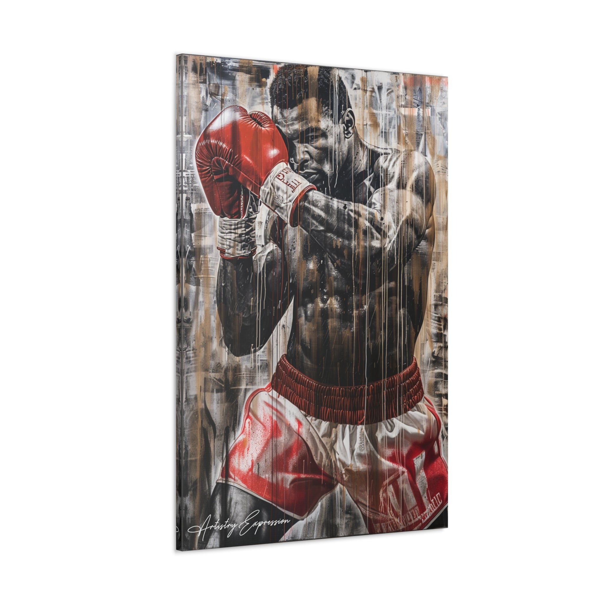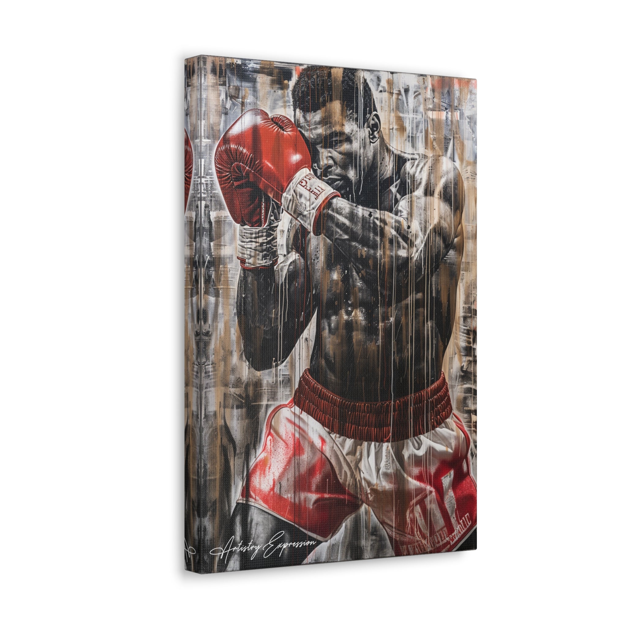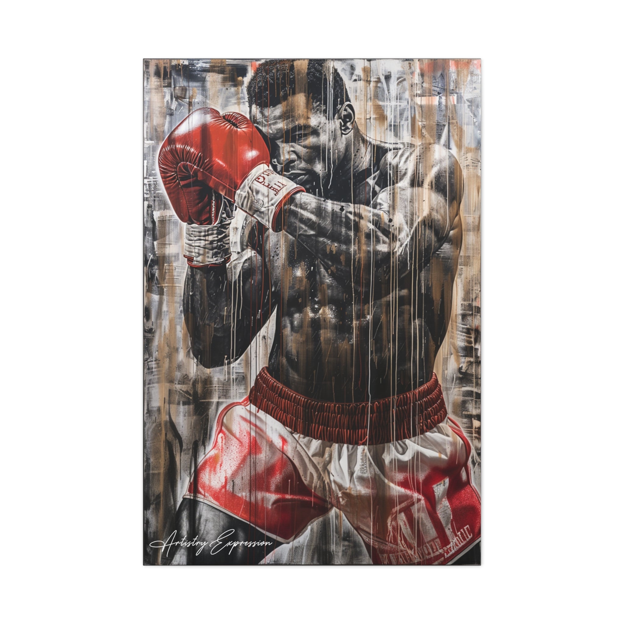 This artwork is a modern and urban tribute to boxing legend Muhammad Ali, using contemporary techniques and materials to capture his strength and fighting spirit.
