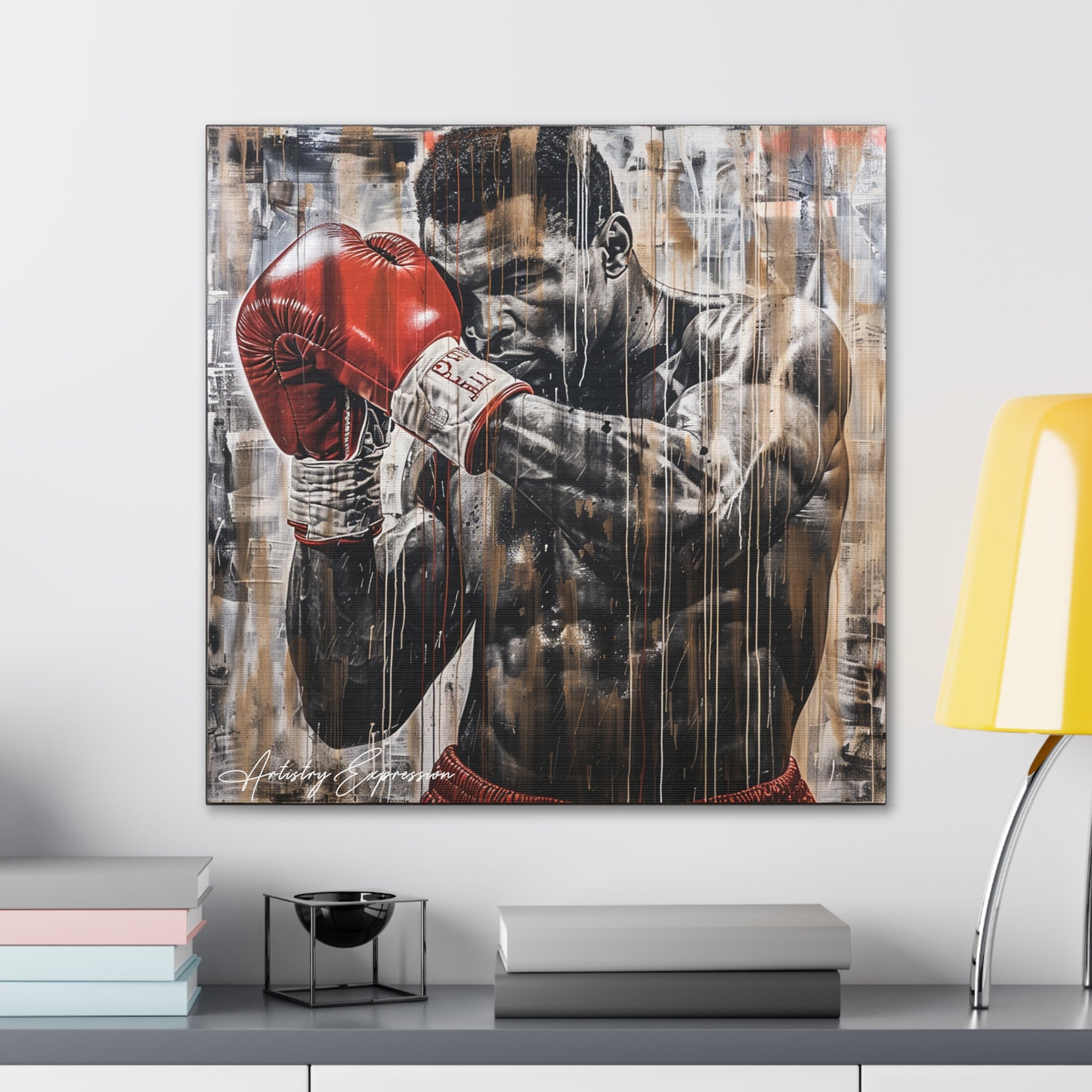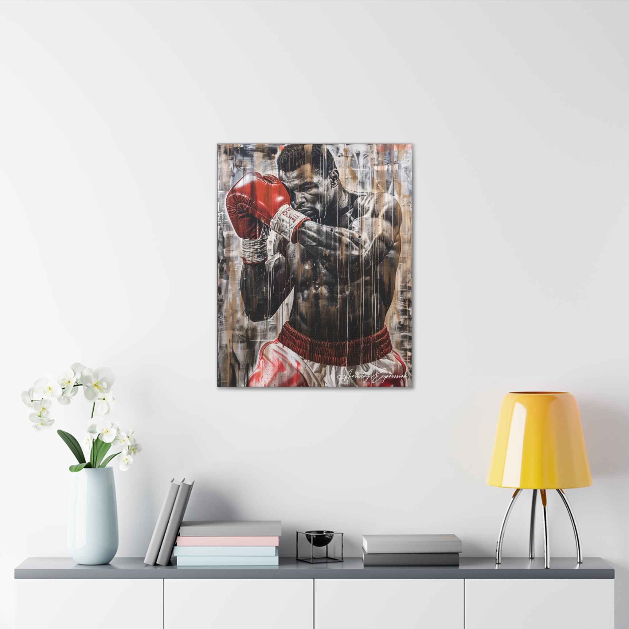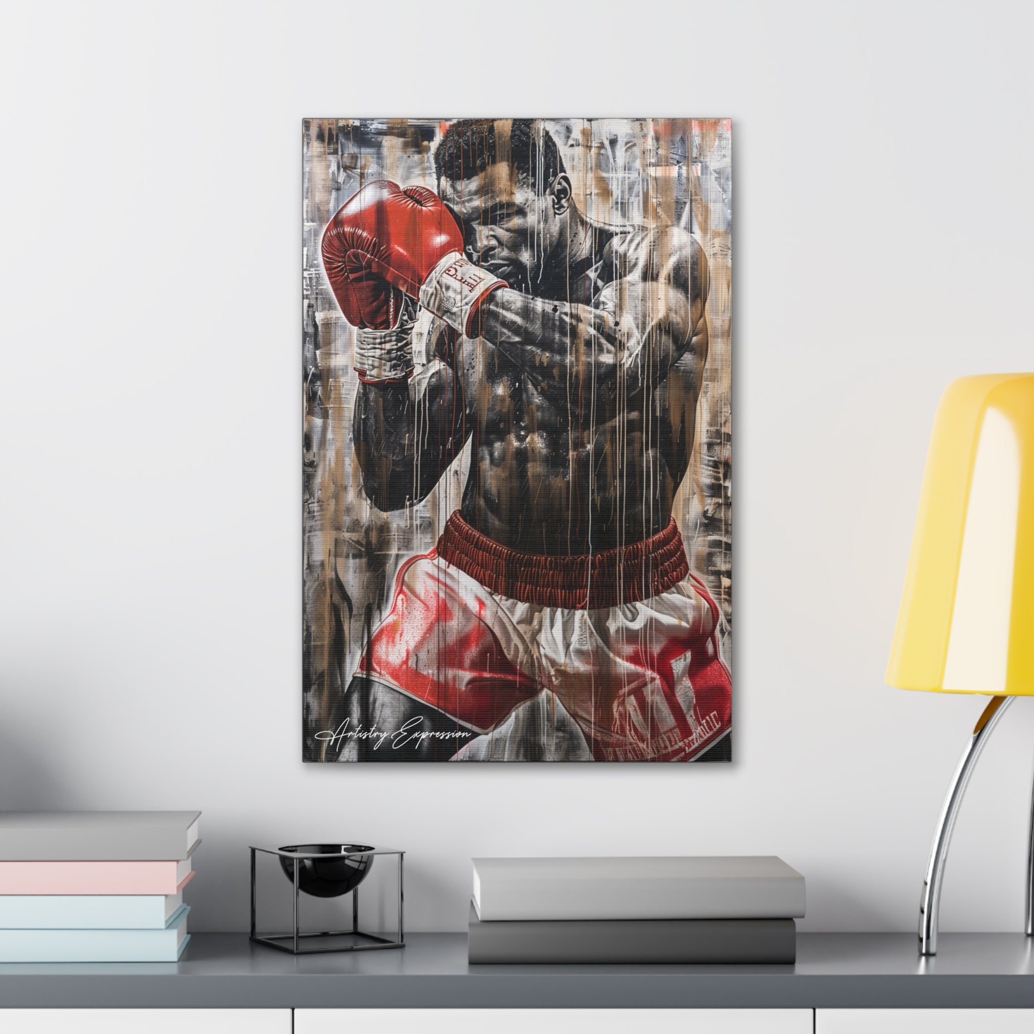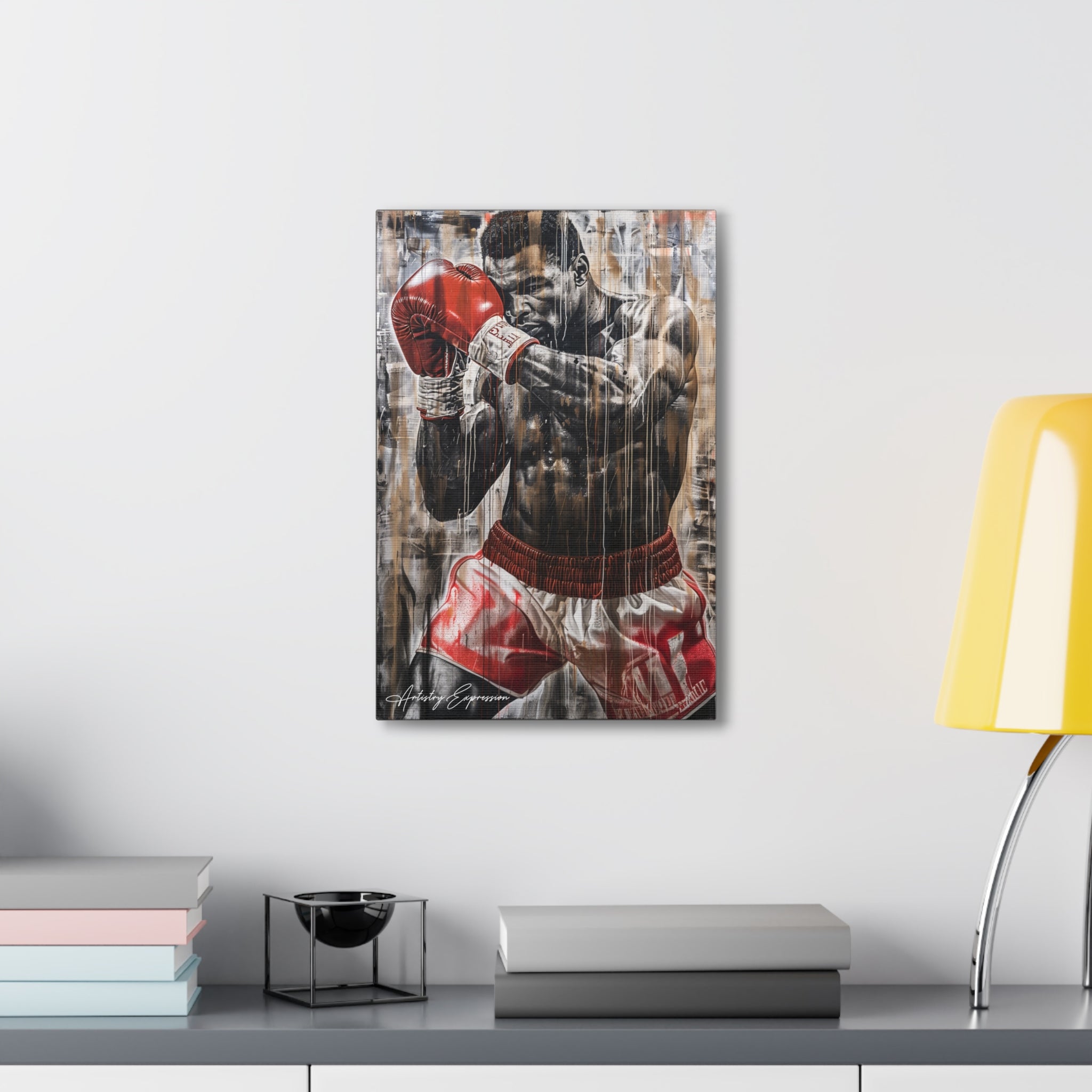 This artwork is a modern and urban tribute to boxing legend Muhammad Ali, using contemporary techniques and materials to capture his strength and fighting spirit.