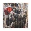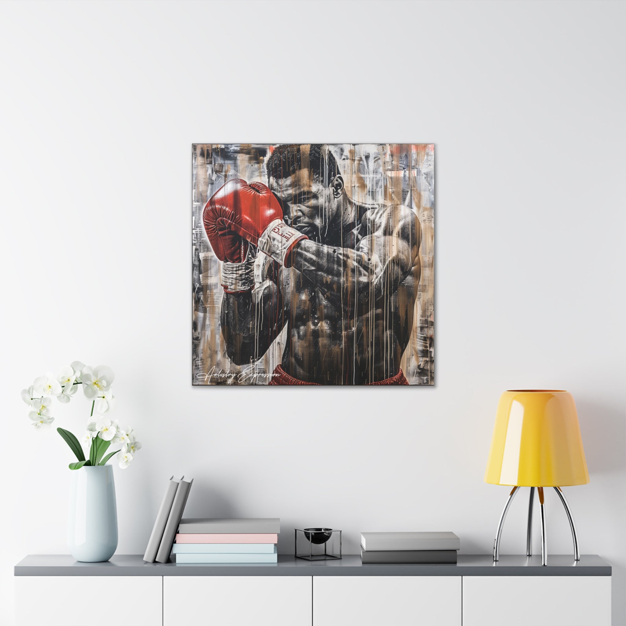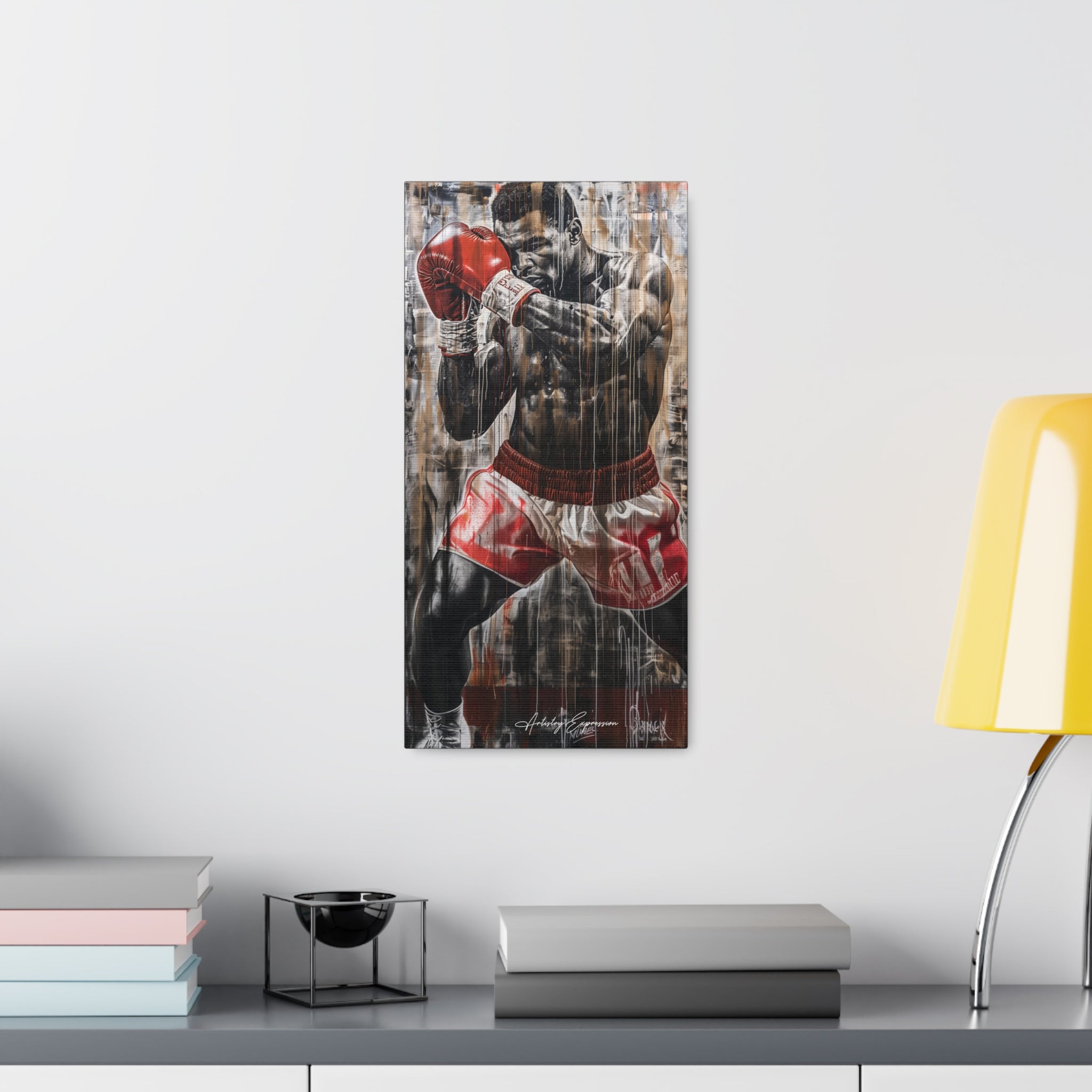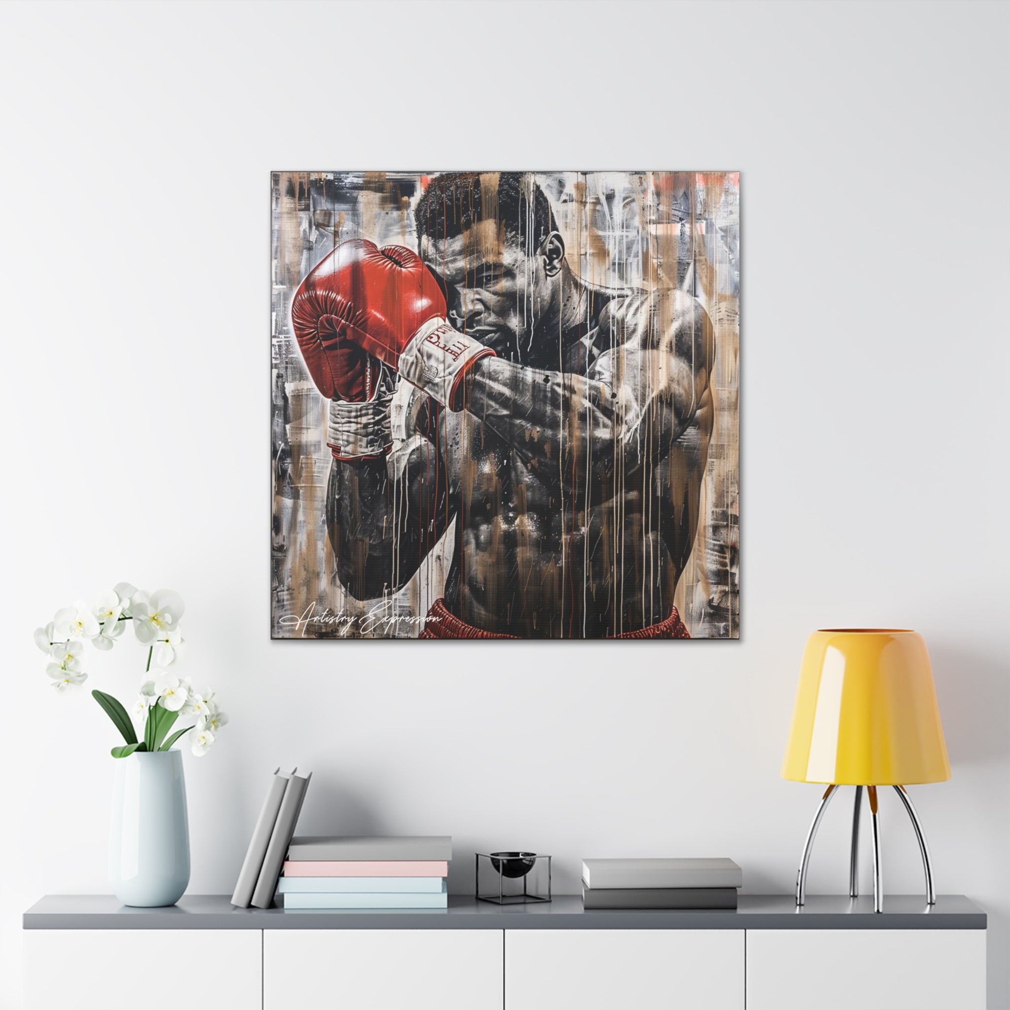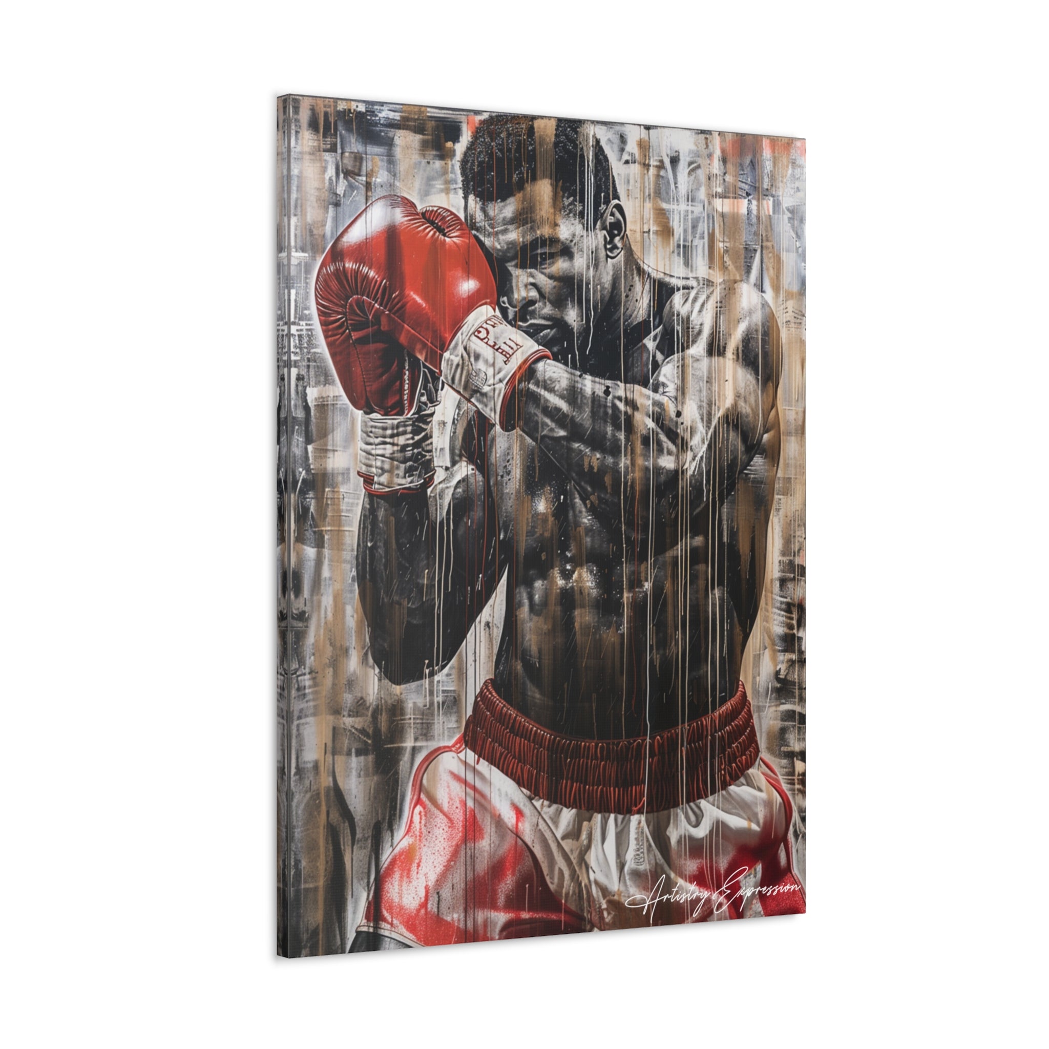 This artwork is a modern and urban tribute to boxing legend Muhammad Ali, using contemporary techniques and materials to capture his strength and fighting spirit.