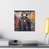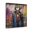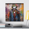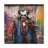 An electrifying graffiti canvas featuring the iconic Joker amidst a burst of vibrant spray-painted colors.