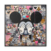 Experience a dynamic urban collage merging pop culture icons with street art flair. From whimsical caricatures to bold brand logos and positive messages, immerse yourself in a colorful celebration of urban vibrancy and unity.