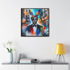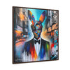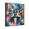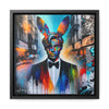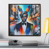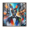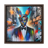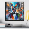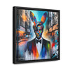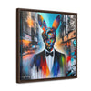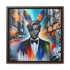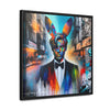 Bunny Business captures the playful spirit of urban art, featuring a man in a colorful suit sporting bunny ears. With vibrant graffiti strokes, the artwork blends whimsy and sophistication, inviting viewers into a world of unconventional style and creativity.