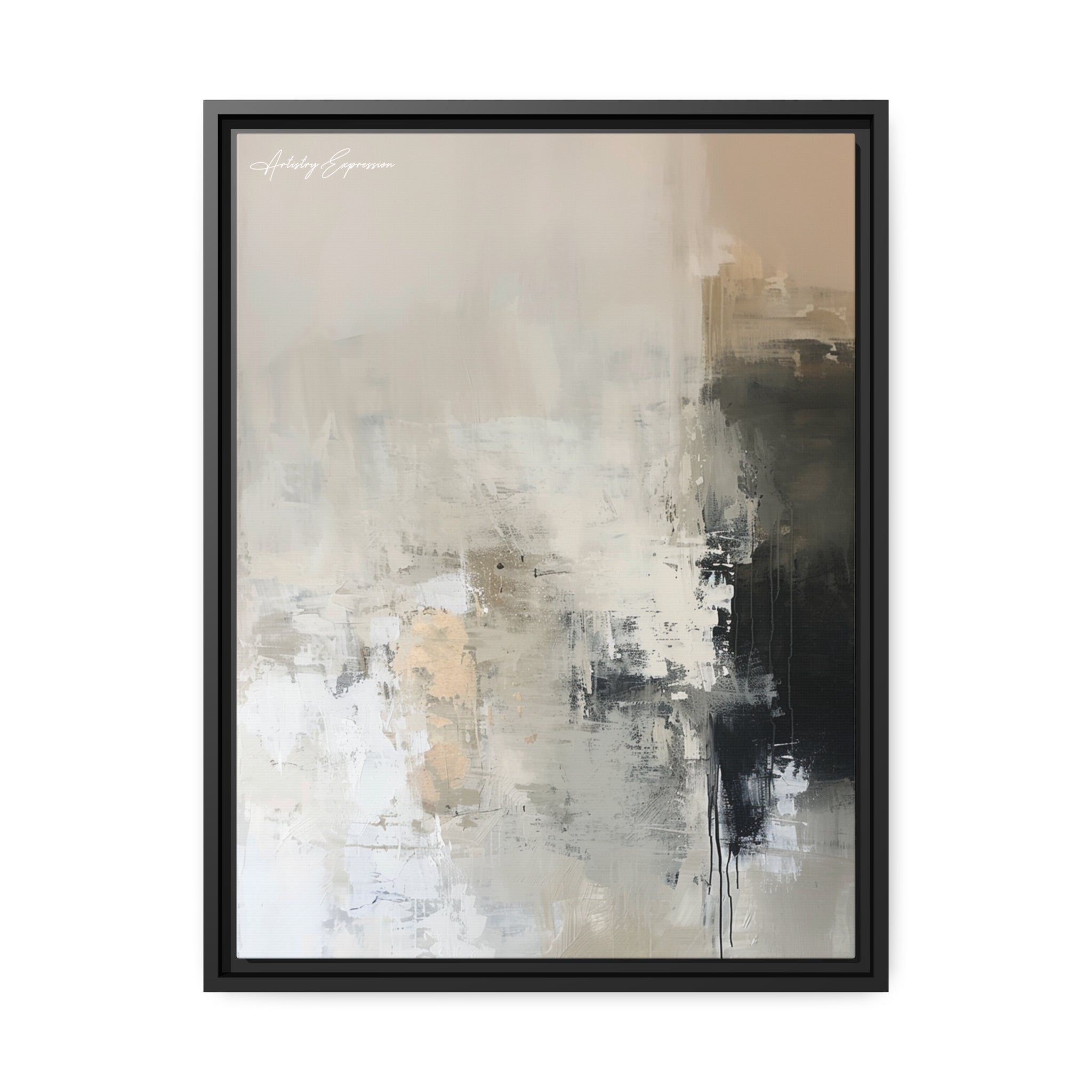 This painting embraces a minimalist and abstract style, reminiscent of the informal or conceptual art movements. Its theme remains enigmatic, inviting viewers to personally interpret the artwork and find their own emotional resonance within it.