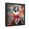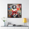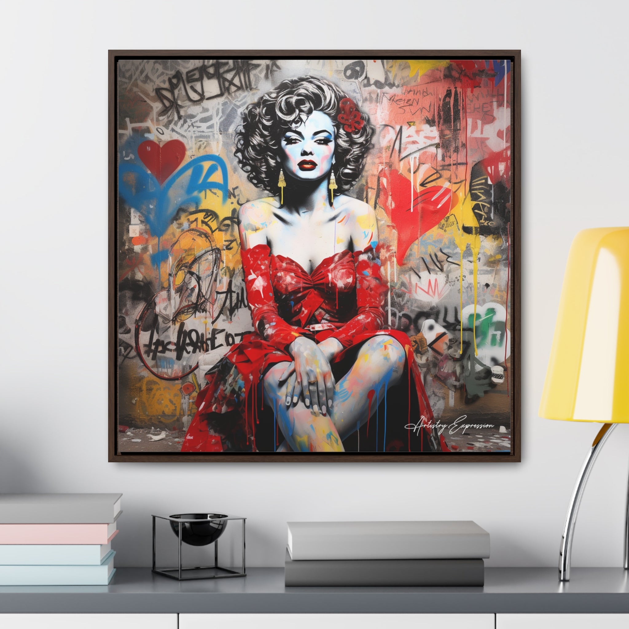 An electrifying graffiti canvas featuring a lady adorned in a vibrant red dress, set against a dynamic backdrop of urban street art. This composition captures the fusion of urban style and elegant glamour, creating a visually captivating scene.