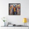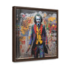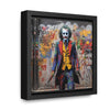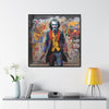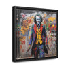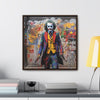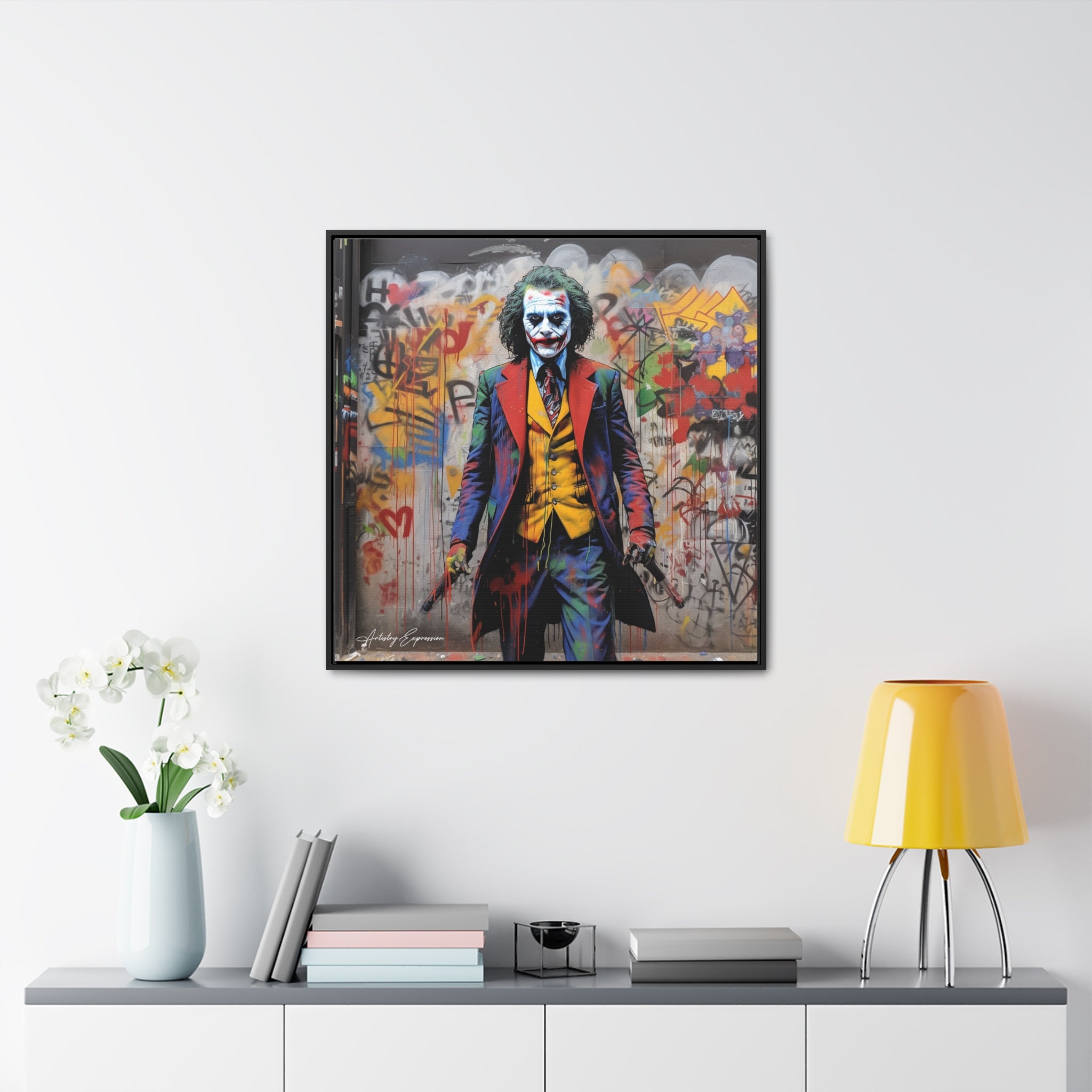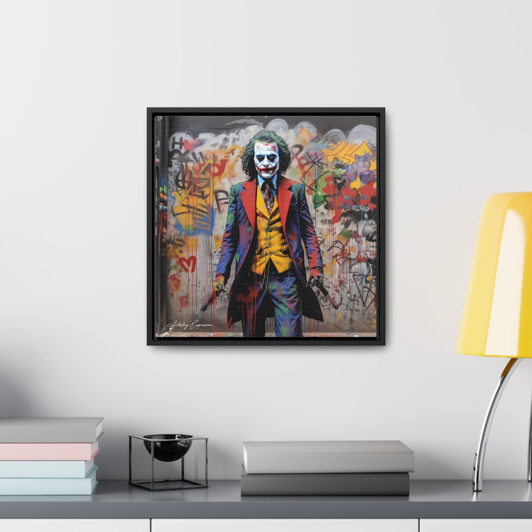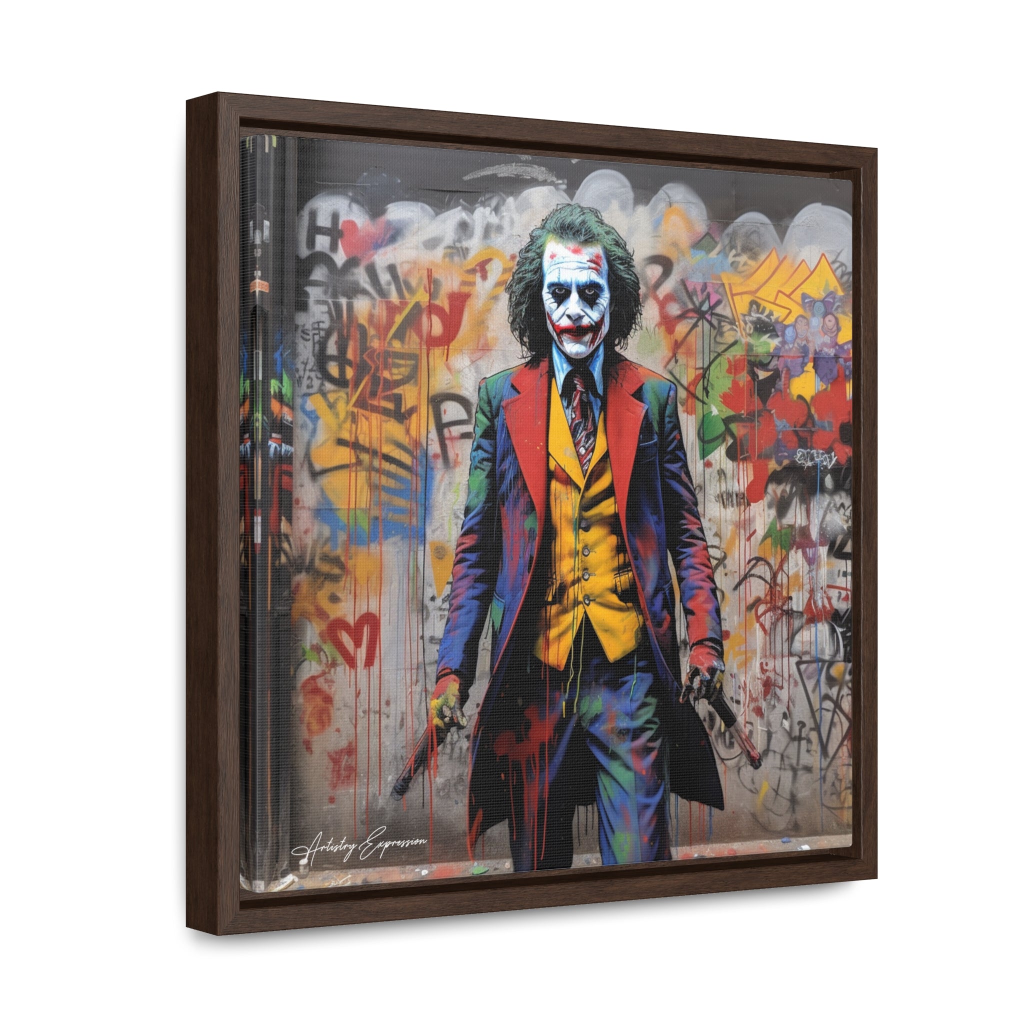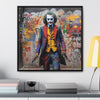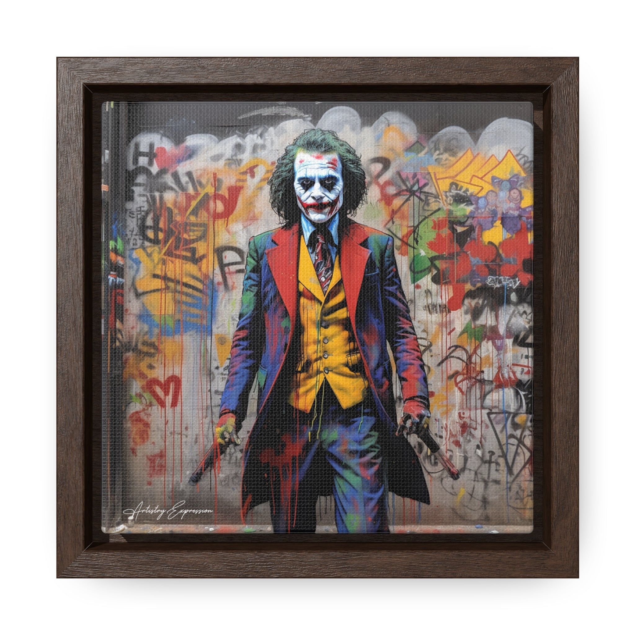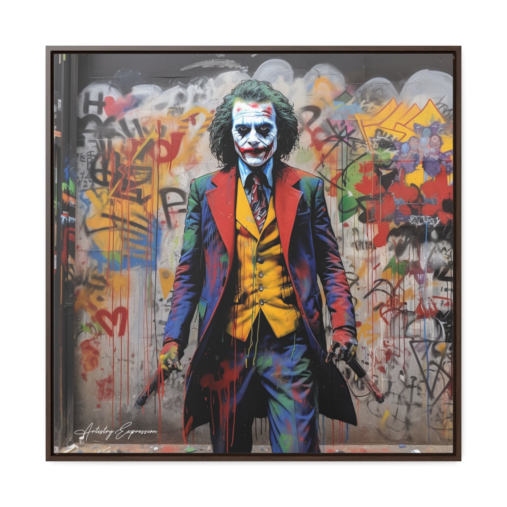 A vibrant graffiti canvas featuring a striking portrayal of the Joker, capturing his iconic grin and mischievous demeanor.