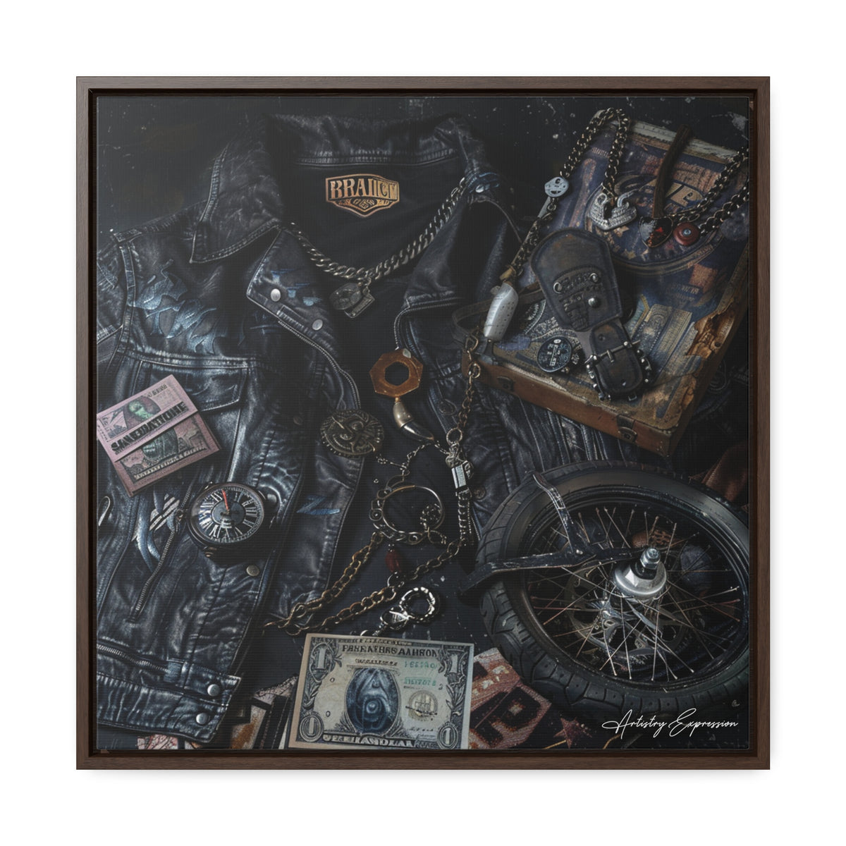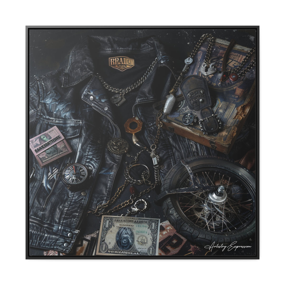 "Harley Davidson" exudes a lifelike texture, meticulously rendering fabrics, jewelry, and currency for a tangible effect.