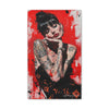 An oil painting featuring a striking portrayal of a hot lady adorned with tattoos, set against a backdrop of intense red hues. The artwork captures the fusion of beauty and rebellion, evoking a sense of passion and allure.