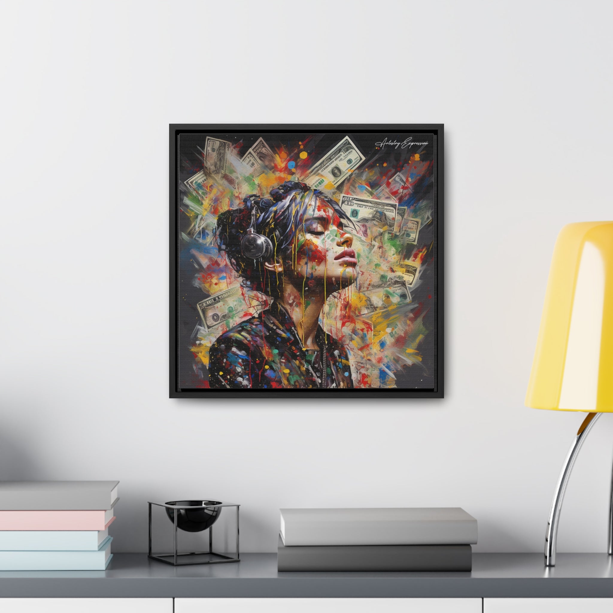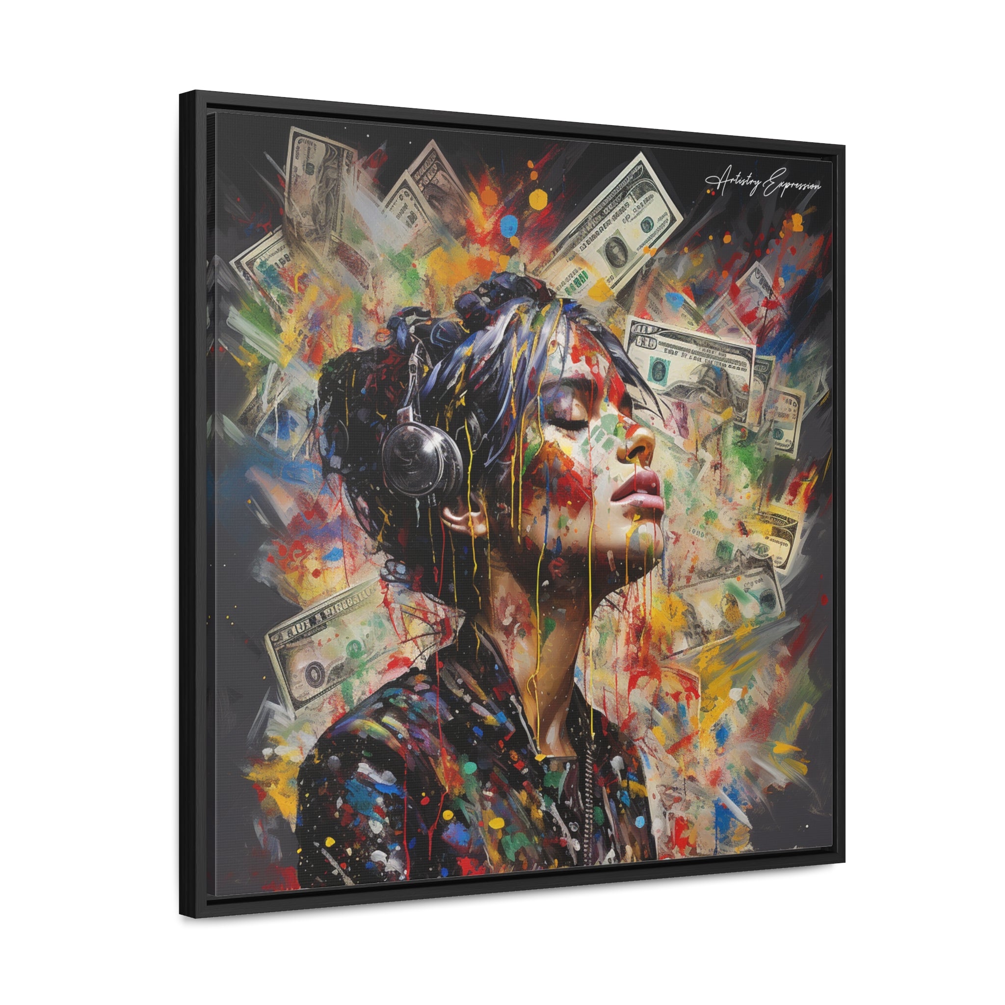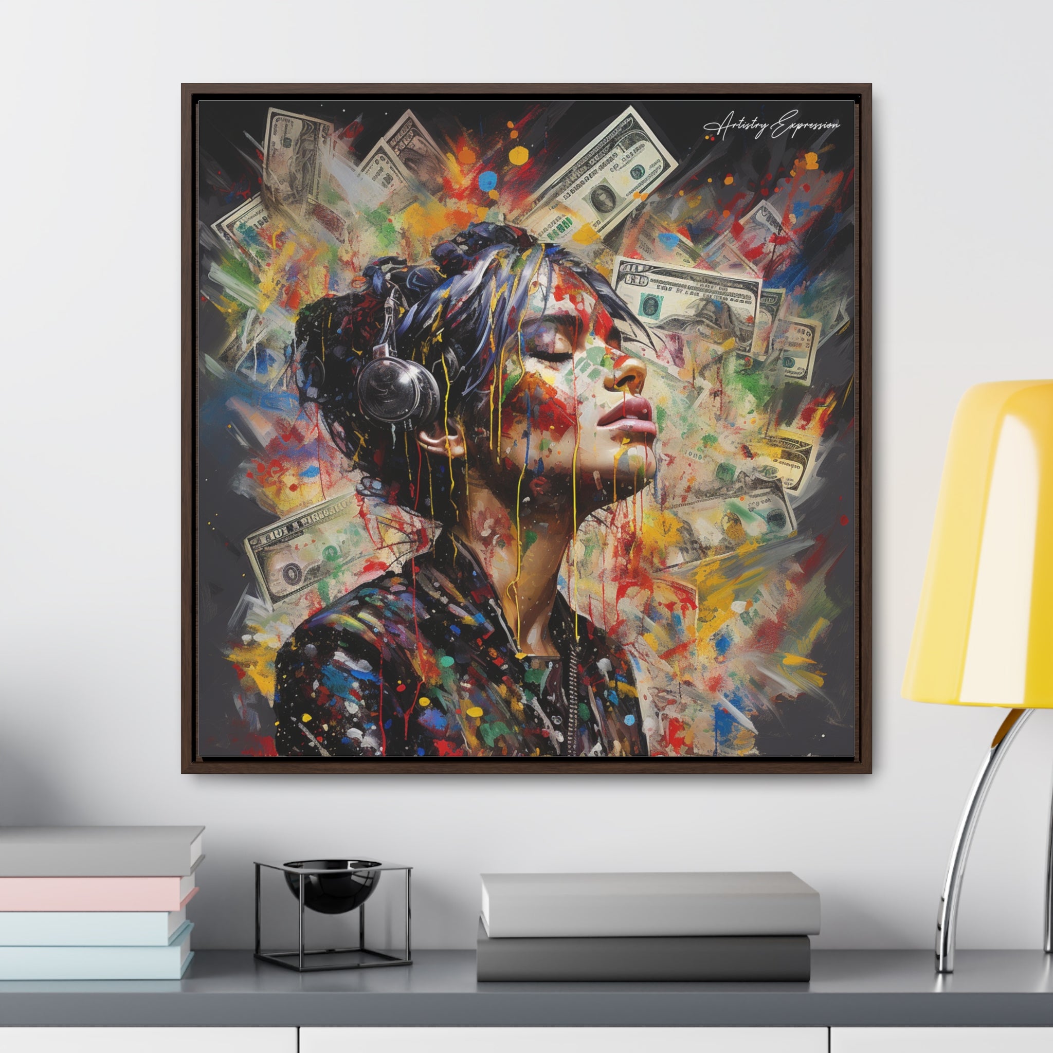 Urban Beats: Graffiti Canvas Featuring Girl with Music and Money