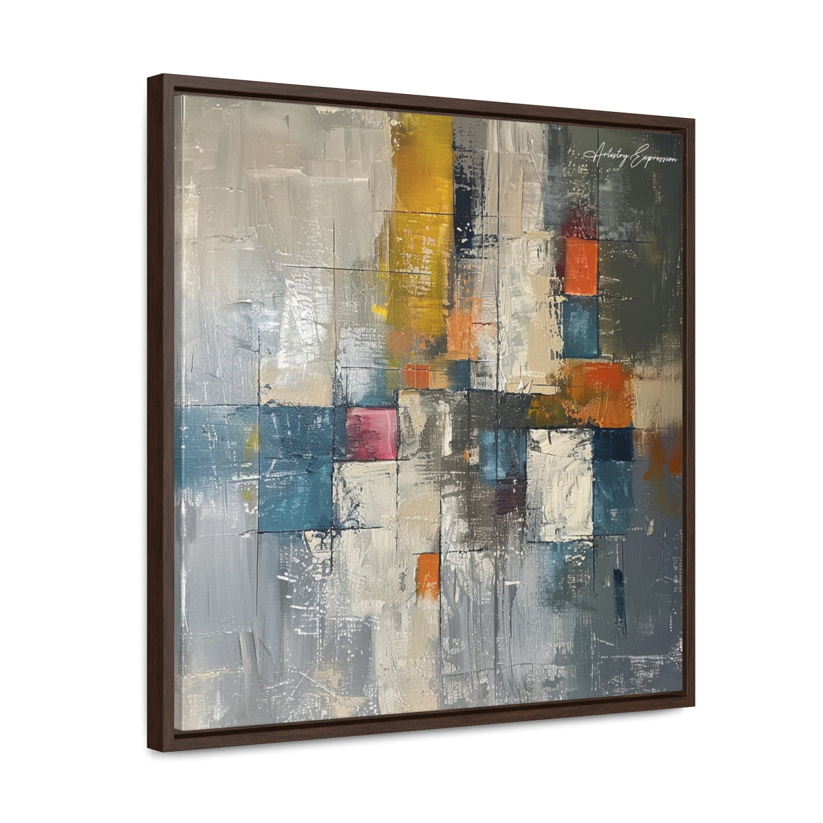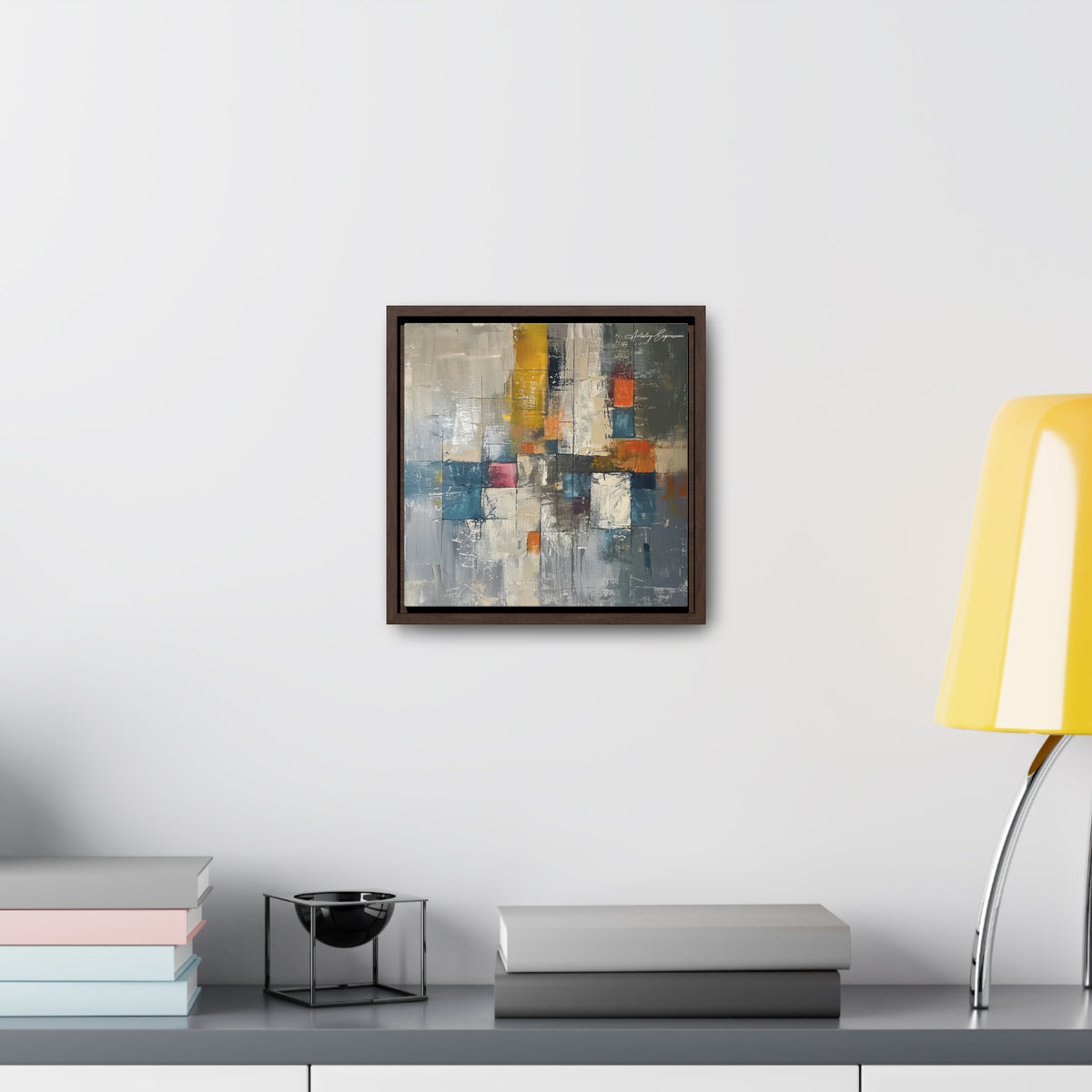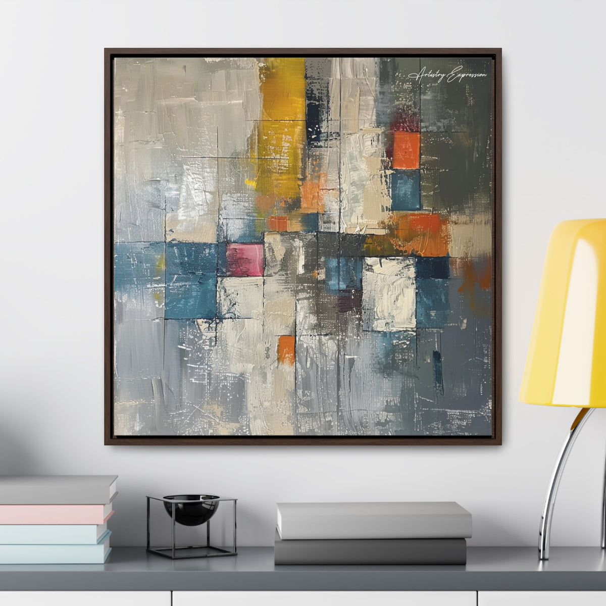 Inspired by modular urbanism and architecture, this work explores harmony and order within complexity. Dominated by neutral tones of white and gray, with strategic accents of yellow, orange, red, and blue, it draws the eye and adds visual dynamism without overwhelming the composition.