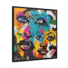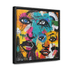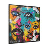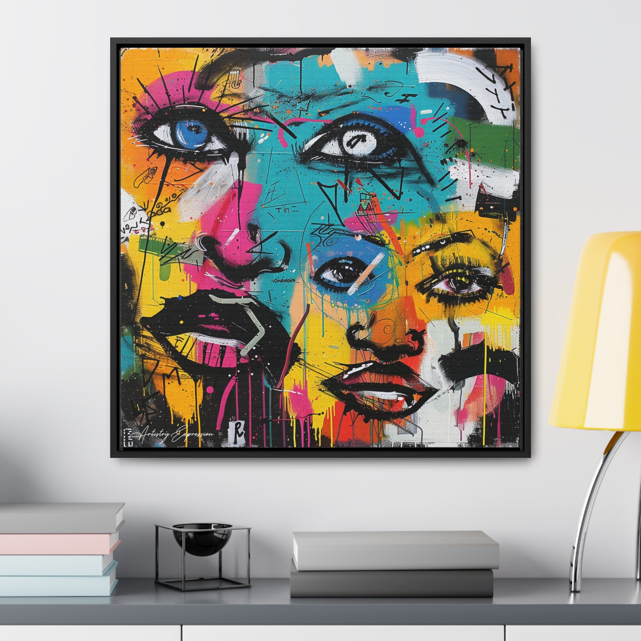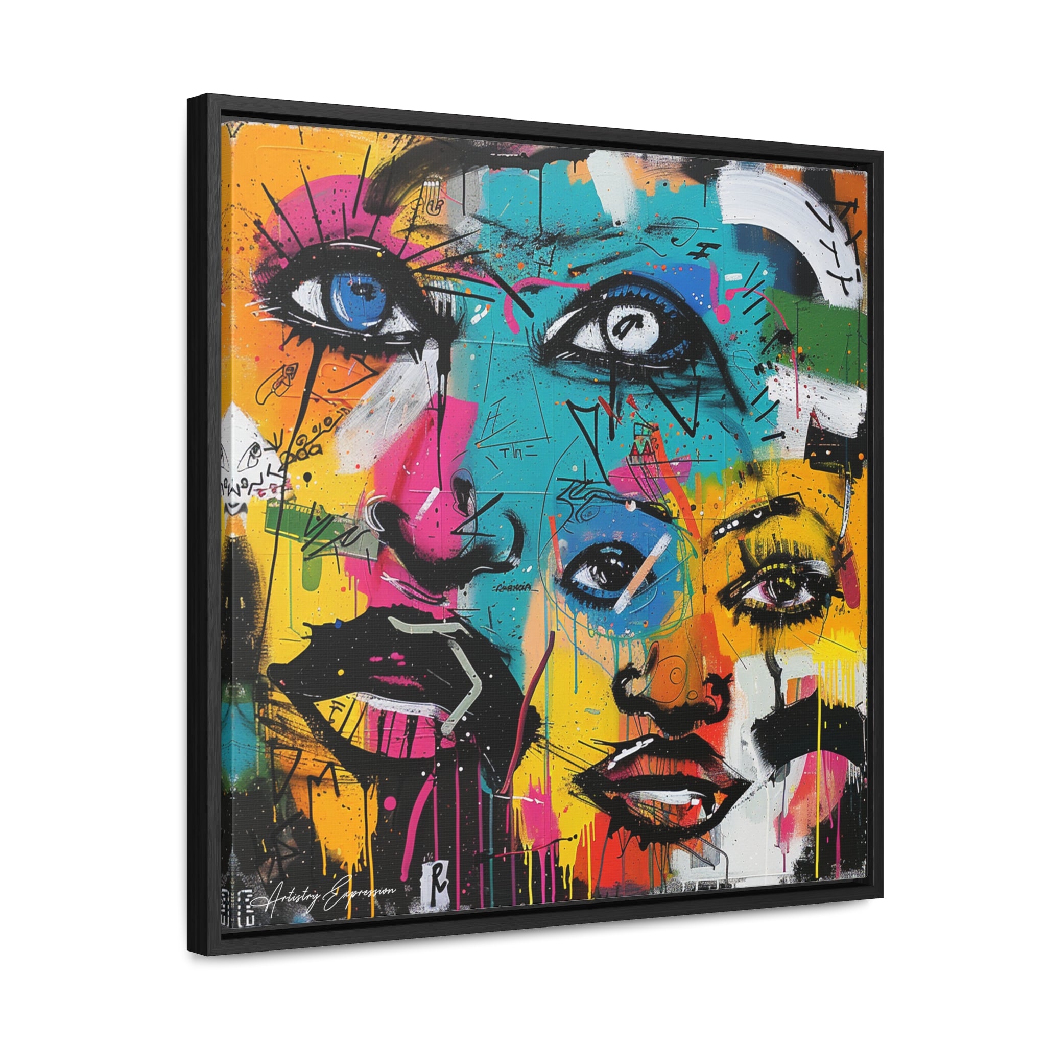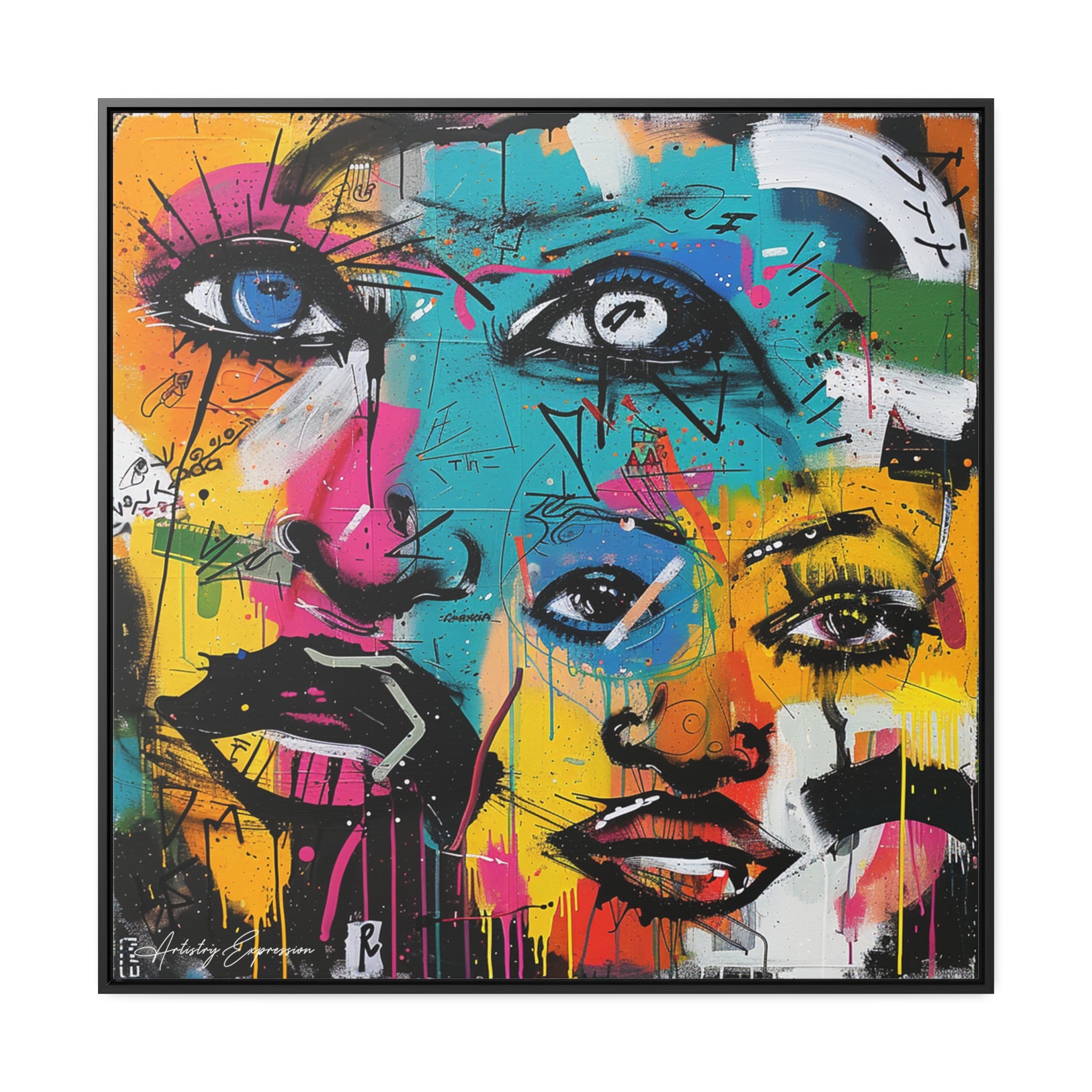 "Mosaïque Urbaine" est une collection éclectique de panneaux d'art vibrant célébrant le style brut et expressif du graffiti et de l'art de rue. Une palette audacieuse de couleurs saturées, allant des jaunes éclatants aux rouges vibrants, crée une toile de fond dynamique pour une multitude de visages et de figures déformées.